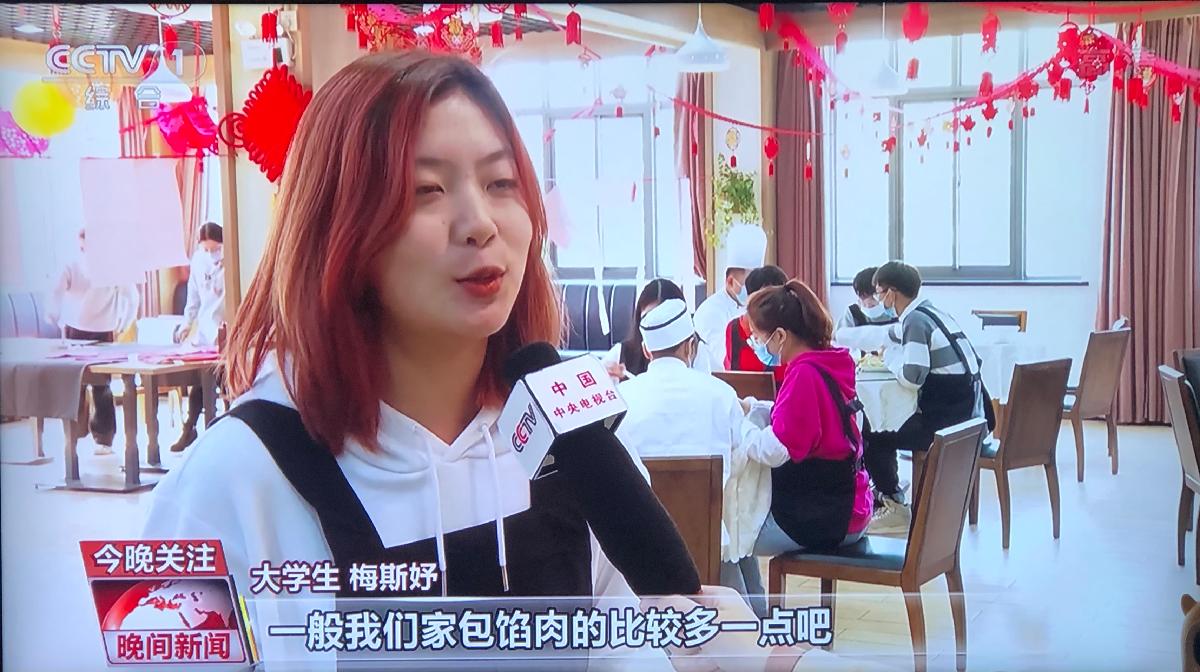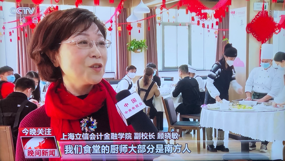 2月4日晚10点,中央电视台一套《晚间新闻》以《谢谢你!不回家的人·乡味解乡愁》为题报道了我校组织留校师生包饺子过小年的活动。在时长2分钟的节目里,报道了活动现场食堂大厨带领同学们包饺子、吃饺子,师生一起写春联,印门神,剪窗花等活动的欢乐场景,找寻南北方过小年传统习俗的最大公约数,传递出浓浓的年味和立信温度。我校副校长顾晓敏接受了记者采访,介绍了学校做法,学生梅斯妤、孟可欣、周观澜畅谈了感想。