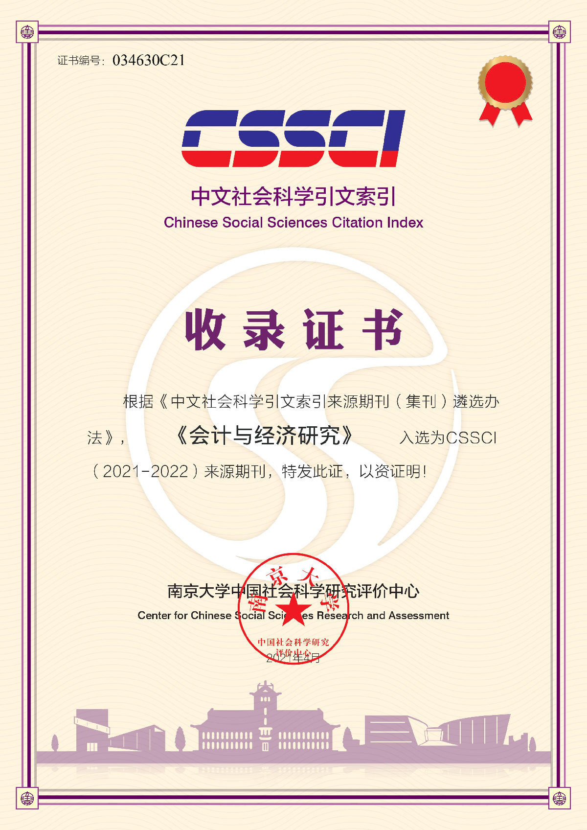 近日,南京大学中国社会科学研究评价中心发布新版CSSCI来源期刊目录。我校主办的《会计与经济研究》自2019年首次入选后,再次入选CSSCI来源期刊目录(2021-2022)。