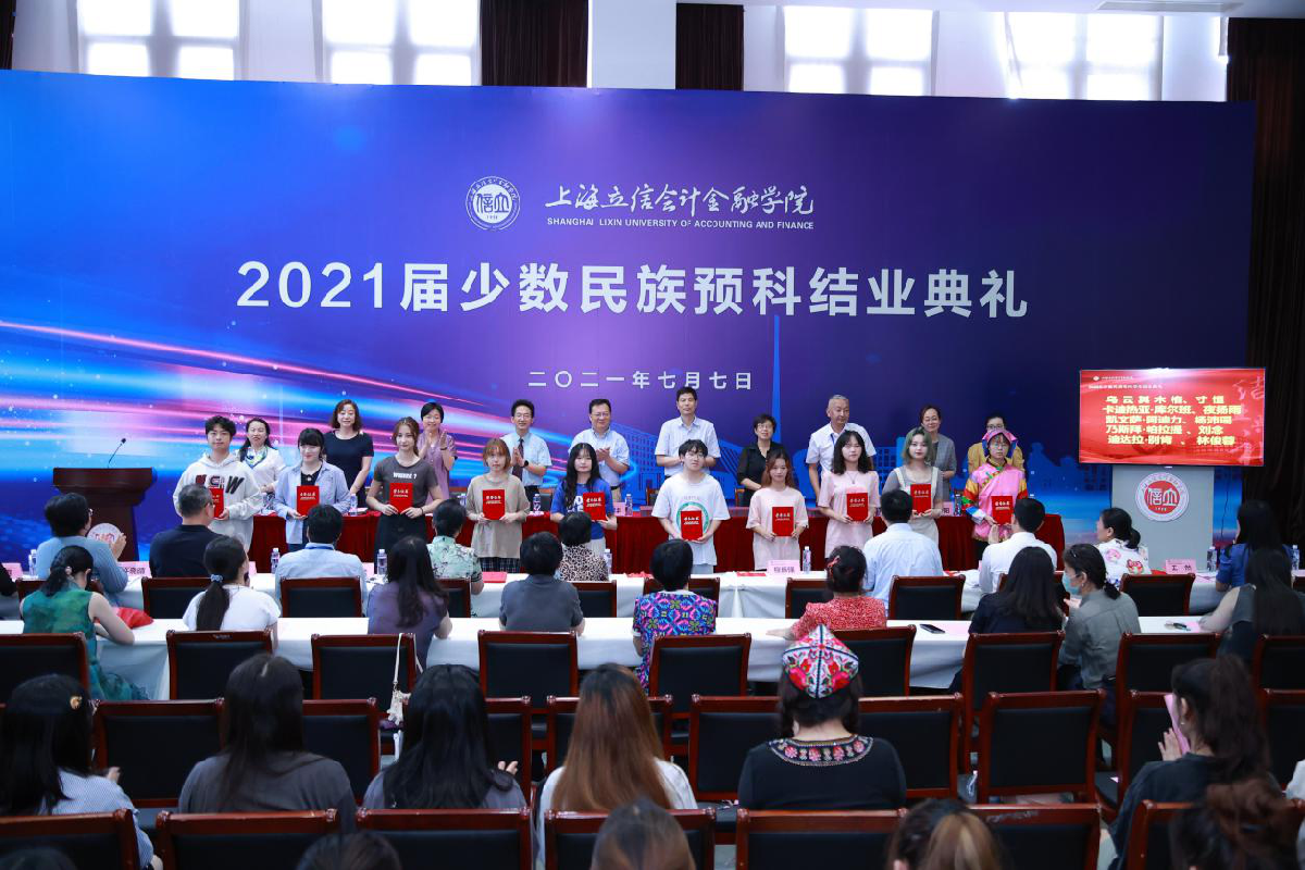 7月7日,我校在浦东校区举行2021届少数民族预科结业典礼。校党委副书记、副校长王军华,校党委办公室、校党委学工部、教务处、财务处、总务处、保卫处、招生与就业办公室、校团委等职能部门、预科分流接收学院领导,人文艺术学院党政班子、教师、2021届少数民族预科全体学生参加结业典礼。典礼由人文艺术学院副书记、副院长陈嵩莉主持。