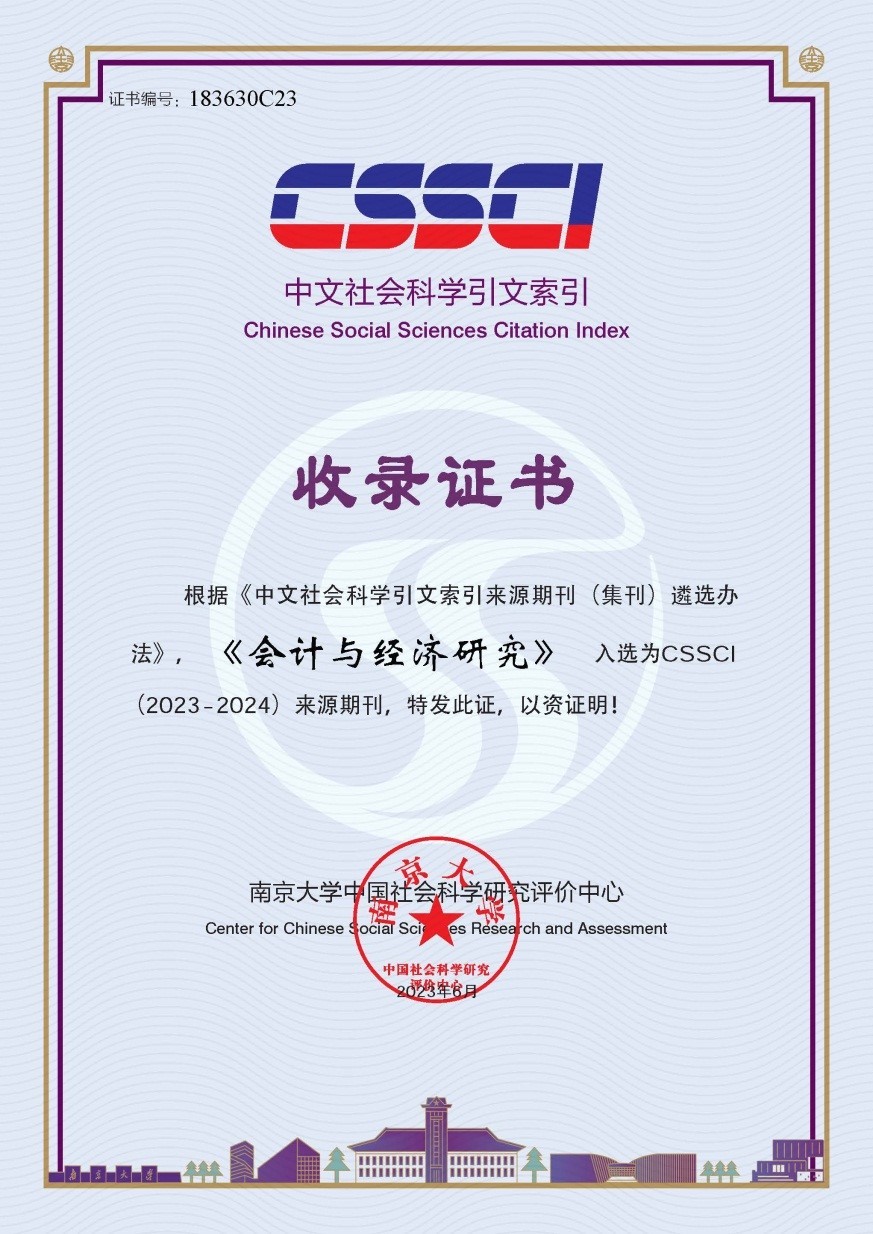 《会计与经济研究》自2019年首次正式入选为CSSCI来源期刊以来,始终坚持学术立刊、特色强刊、开放办刊的高质量发展之路,学术质量和学术声誉稳步提升。多年来,期刊积极融入学校发展大局,通过开展校内稿件直通车、大学生论文写作指导等项目,助力学校师生论文写作和发表;通过举办“国有企业公司治理论坛”、“政府与会计”学术论坛、“新文科·新技术·新会计”国际论坛等高端学术论坛,努力打造学术交流、人才集聚和交叉跨学科对话阵地,勇担引领学术前沿、培育学术新人、促进学术传播、倡导学术诚信的使命担当,助力学校高质量发展。