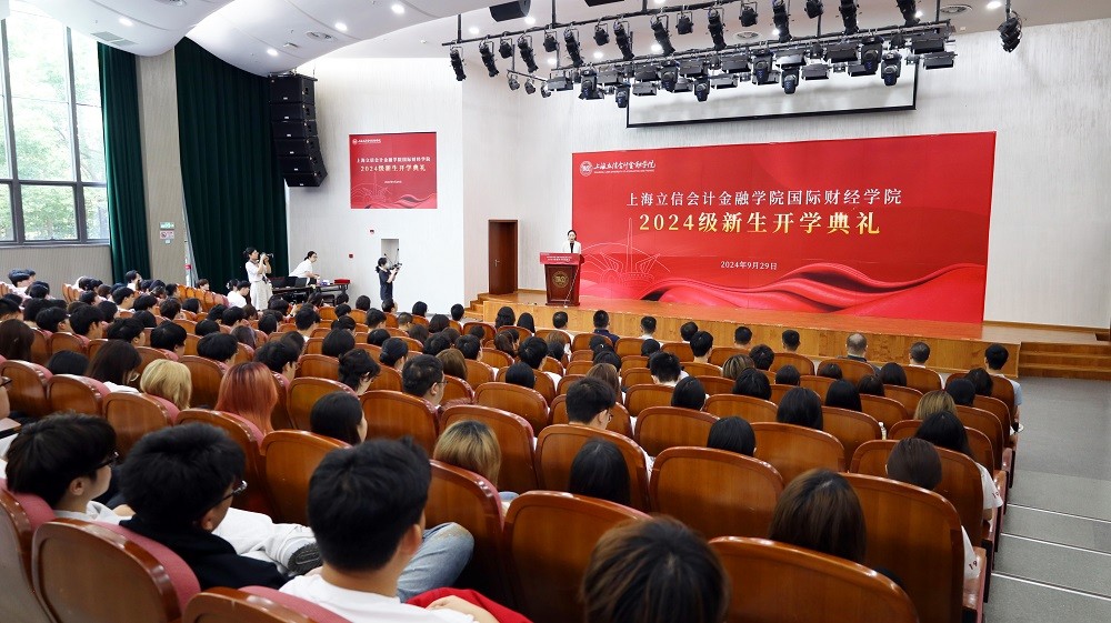 温景春代表学校对2024级新生的到来表示热烈欢迎。他指出:立信学子不仅是一个称谓,更是一种精神,一种传承,他鼓励学生将立信校训融入血脉,以真诚之心,行信义之事。温景春对2024级新生提出三点希望:一是厚植家国情怀,赓续立信精神,如立信前辈一样,在家国使命中锻造爱国担当的立信品格,在强国之路上奋力奔跑,立志报效祖国、服务人民;二是勤学笃行,在校期间掌握扎实的专业知识,建立多元的知识储备,提升对世界的认知水平,加强对思维能力的开拓;三是脚踏实地,勤学善思,从点滴做起,制定学习规划,并持之以恒,积小胜为大胜,把理想的蓝图绘成实景图。