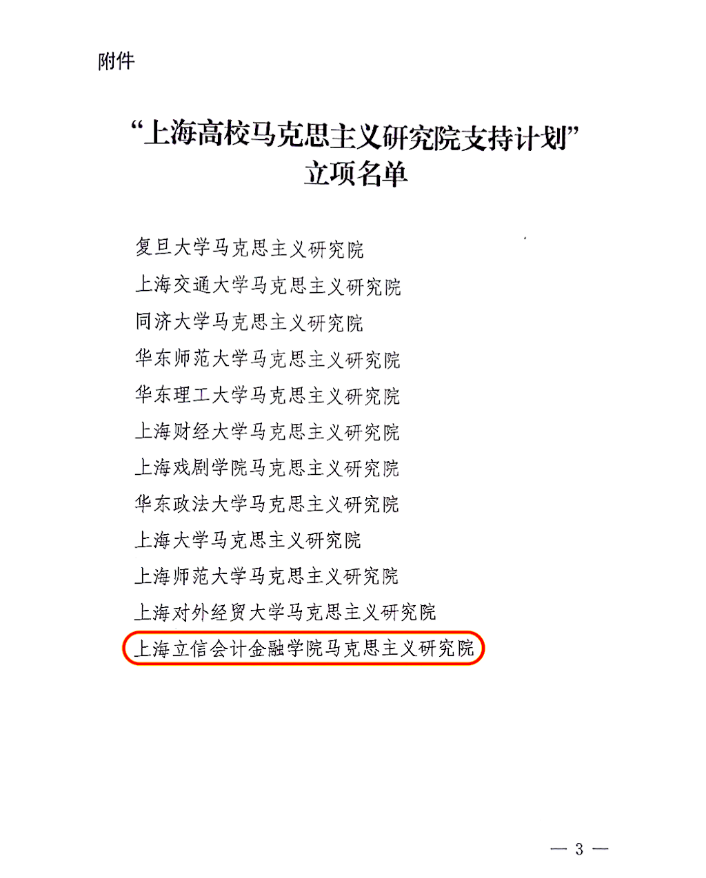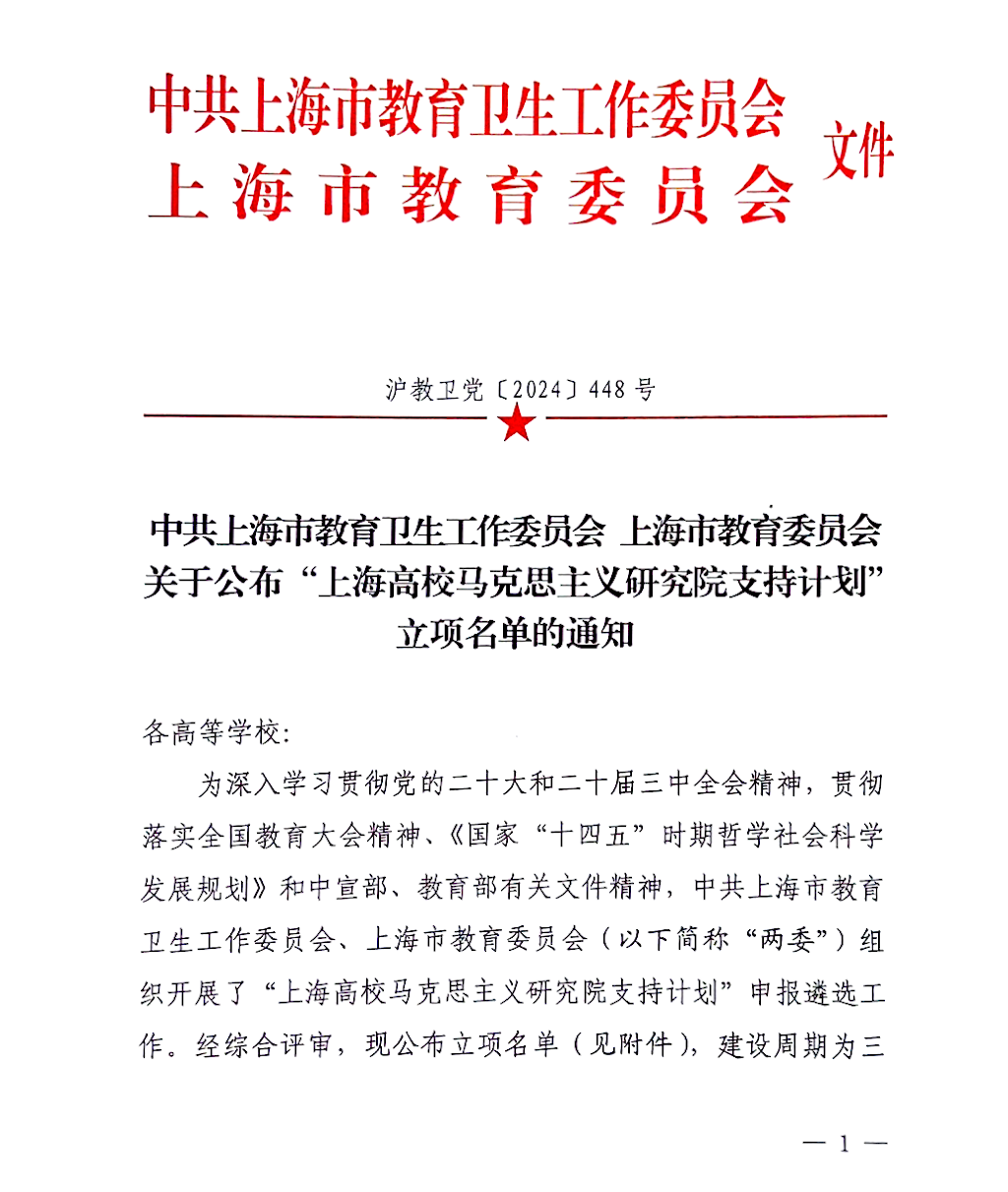 2024年12月31日,中共上海市教育卫生工作委员会、上海市教育委员会公布入选“上海高校马克思主义研究院支持计划”的十二所高校名单。我校马克思主义研究院成功入选。