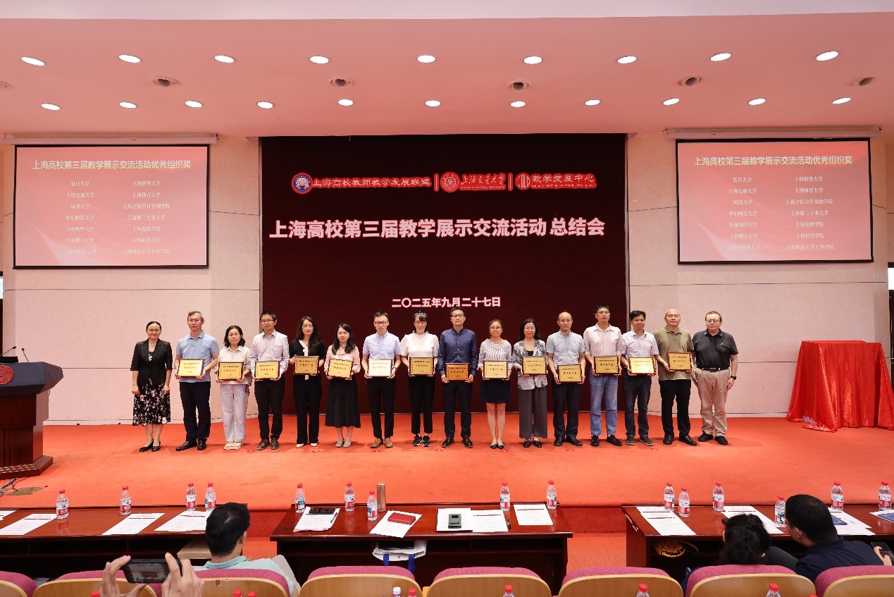 会上集中展示了上海高校本科课堂建设及教师教学发展成果,为入选2024年度“上海高校示范性本科课堂”的课程主讲教师,2024年度“上海高校教师教学能力提升试点班”结项优秀教师、教学指导专家,以及获得“上海高校第三届教学展示交流活动”优秀组织奖的高校颁发了证书和奖牌。