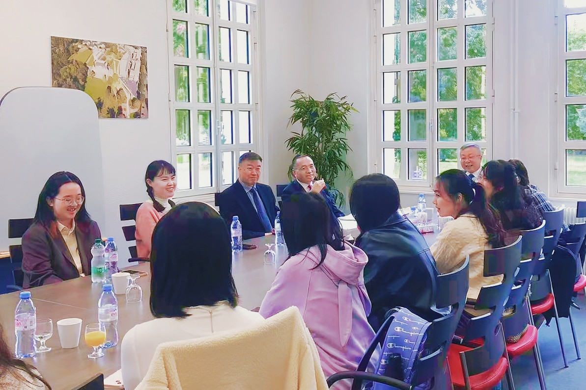 座谈会中,任友群关切地询问了我校学生在诺欧商学院的学习和生活状况,并围绕未来职业规划、回国就业、线上资源库拓展等不同议题,与同学们进行了面对面的交流和讨论。任友群表示,当前国内的发展日新月异,对各类专业人才的需求十分旺盛,教育部高度关注海外留学生的需求和发展,通过政策优化、资源对接等方式,为留学生回国就业和创业提供更便捷的支持。他鼓励学生充分利用在法国的学习机会,不断提升自己的专业素养和综合能力,将在国外所学的知识和经验带回国内,为国家的建设和发展贡献力量。他还特别提醒同学们要注意自身安全,遵守当地的法律法规,保持积极向上的学习和生活态度。