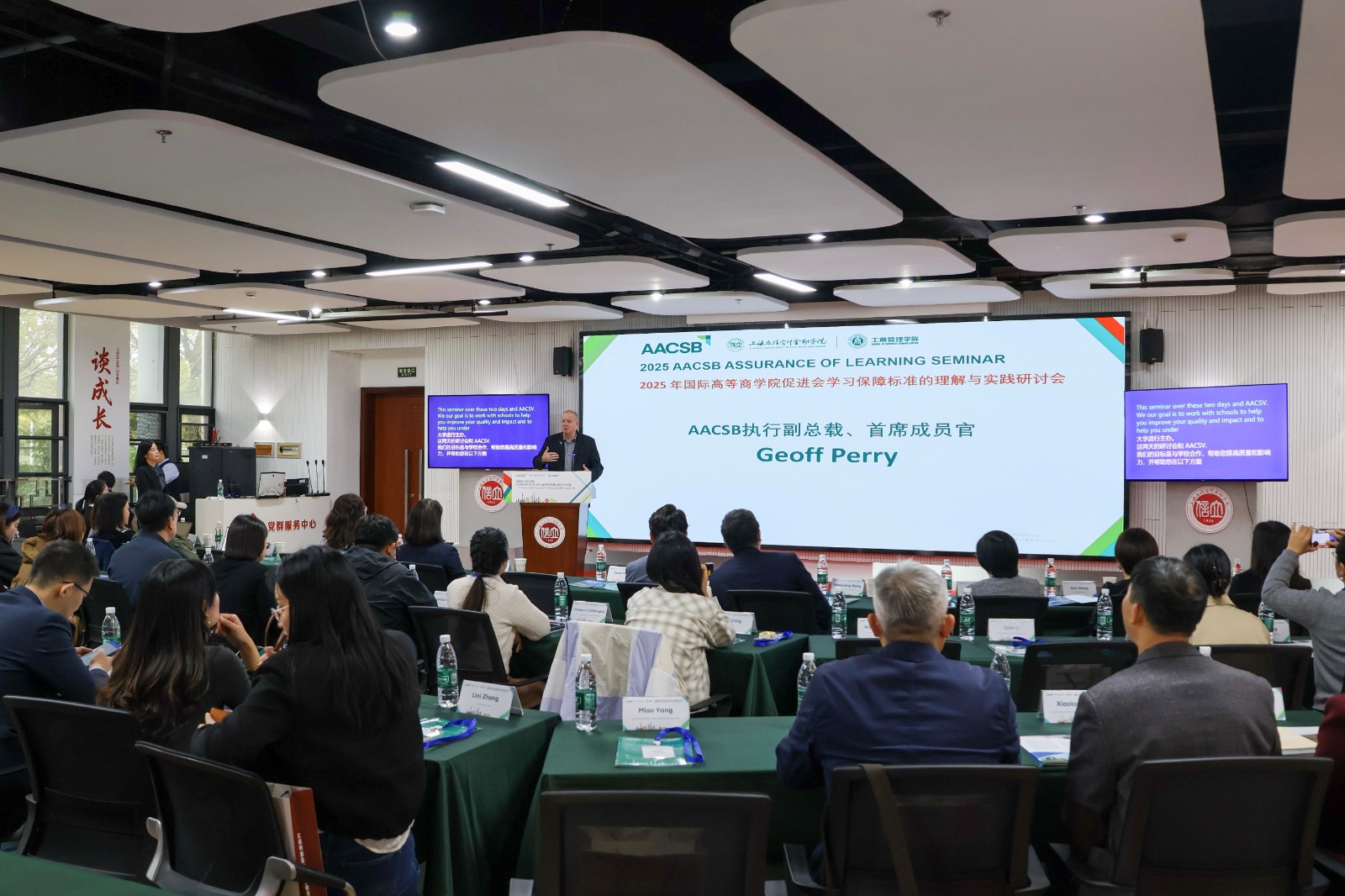 11月4日-5日,AACSB上海学习保障标准(AoL)理解与实践研讨会在上川路校区召开。校党委常委、副院长刘永琴出席并致开幕辞。AACSB执行副总裁杰夫·佩瑞(Geoff Perry)、亚太区负责人徐国栋等出席研讨会。来自国内外多所高校的30余位教师围绕商科教育质量保障与学习成果评估体系的建设与优化展开深入交流。