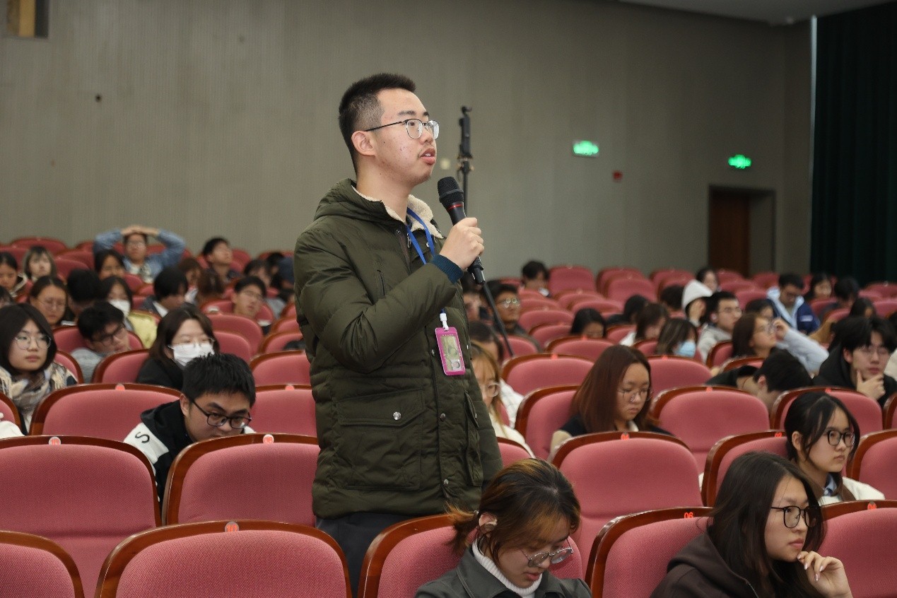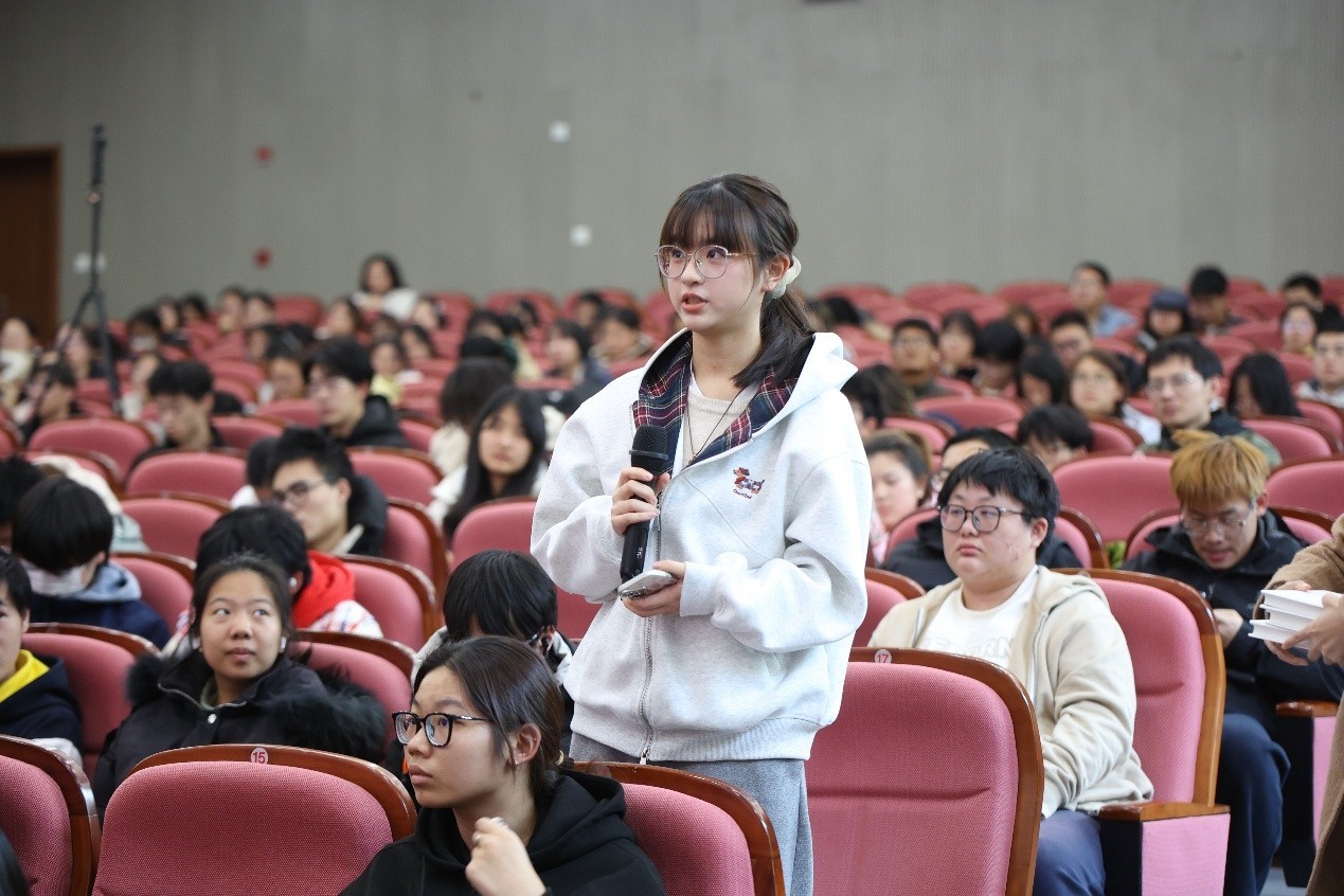 童世骏认为,在“学以成才”层面,要好奇心与责任心并重,摒弃狭隘功利性求知,重视“无用之用”的知识价值,培养怀疑精神与提问能力,并以“李约瑟之问”和“钱学森之问”反思创新人才培养之道;在“学以成人”层面,要解析物我、人我、自我三重关系,在驾驭物质世界、构建人际和谐、完善自我认知中确立价值坐标;在“学以成己”层面,要从自我超越与人类使命出发,秉持“成长是硬道理”,平衡工具理性与价值理性,坚守“成人在己”的品格追求。身处数智时代,他建议大学生将AI视为“研究伙伴与助教”,通过高质量提问发挥其价值,同时保持独立思考与批判精神,在集体活动与公益行动中践行知行合一,锤炼价值观。讲座最后,他鼓励青年学子胸怀家国、放眼世界,在数智时代为民族复兴与人类文明进步贡献力量。