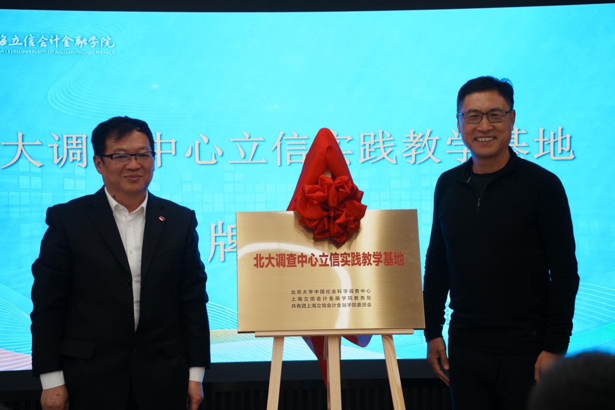 12月10日,由我校与北京大学中国社会科学调查中心联合共建的“北大调查中心立信实践教学基地”成立揭牌仪式在上海市金融数据港AI创新中心举行。上海市浦东新区数据局党组成员、副局长岑焕彩,上海张江(集团)有限公司党委副书记、副总经理韩国飚,校党委副书记、副院长王军华,上海市浦东新区大数据中心数据资源部部长沈王恒,上海市金融数据港总经理沈啸强,北京大学企业大数据研究中心主任、光华管理学院讲席教授张晓波,北京大学中国社会科学调查中心项目主管孙妍及学校教务处、团委、国际经贸学院相关负责人出席。仪式由教务处处长罗秦主持。