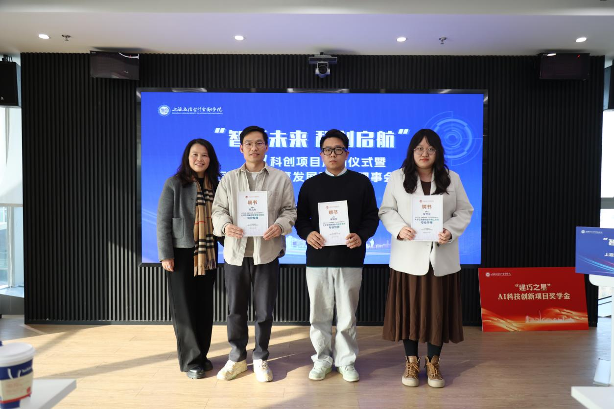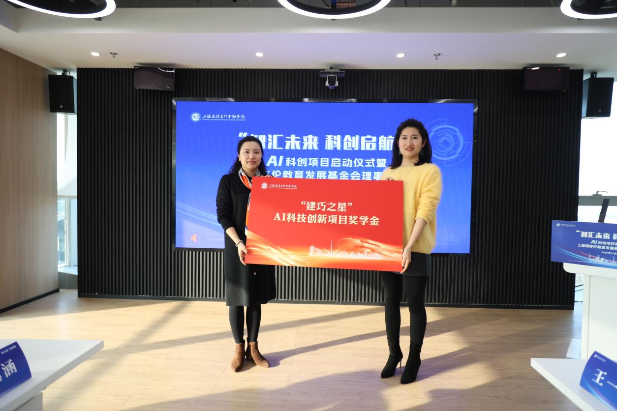 12月29日,“智汇未来 科创启航”AI科创项目启动仪式暨上海潘序伦教育发展基金会理事会会议在金融数据港AI创新中心举行。校党委副书记、副院长王军华,基金会全体理事及监事、校友代表,校友事务及教育发展办公室、团委及创新创业学院负责人,获奖学生代表等参加活动。