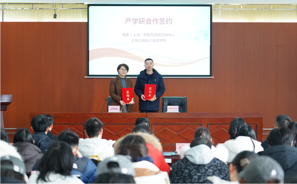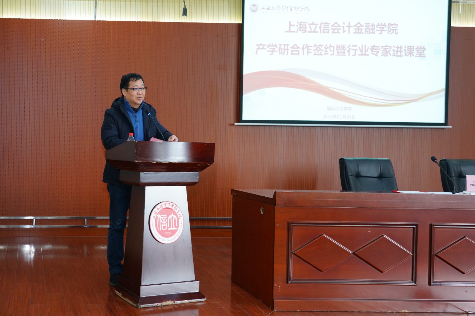 1月5日,国际经贸学院举行产学研合作签约仪式暨“行业专家进课堂”活动。校党委副书记、副院长王军华,上海市新型互联网交换中心有限责任公司总经理张茜、产品副总监黎建伟,国际经贸学院党委副书记、院长毕玉江等出席。