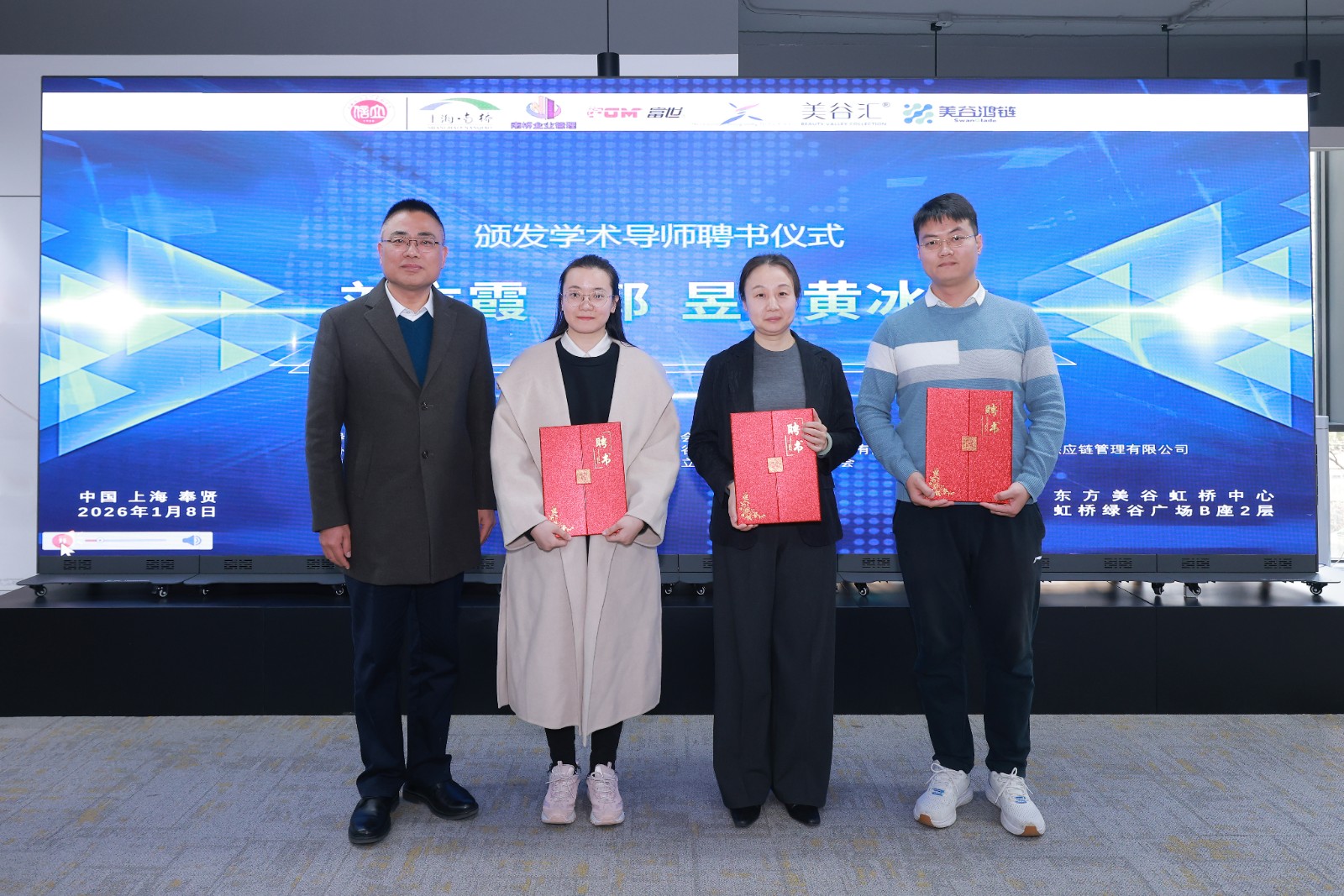 1月8日,学校与东方美谷企业集团上海电子商务有限公司联合举办产教融合创新赋能研讨会暨“数据资产创新实验中心”启动仪式。校党委副书记、副院长王军华,南桥镇人民政府上海南桥企业管理有限公司党支部书记唐文忠,东方美谷企业集团上海电子商务有限公司董事长陈湧及企业代表、师生代表等出席活动。活动由会计学院院长李培功主持。