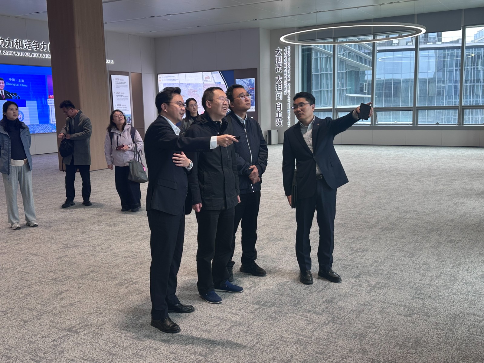 为深入推进2026年度上海市人民政府决策咨询研究重大课题“临港新片区加快释放高水平制度型开放综合效应研究”相关工作,4月23日,校党委副书记、课题负责人尹晨教授带队赴临港新片区开展专题调研。上海市人民政府发展研究中心开放研究处副处长钱洁、课题组成员参加调研。