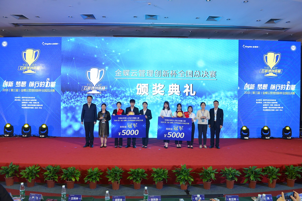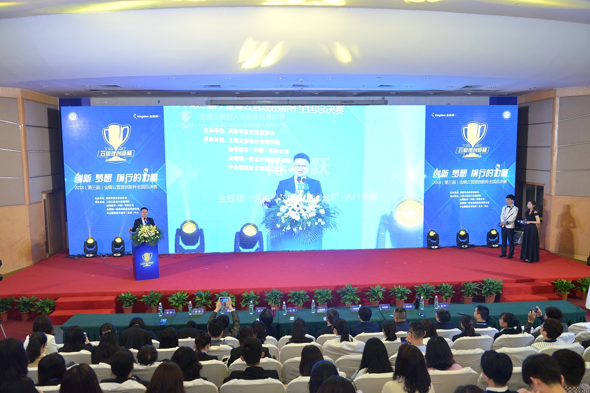 4月21日,全国应用型人才综合技能大赛——2018(第三届)金蝶云管理创新杯全国总决赛在松江校区学验楼举行。大赛以“创新 梦想 前行的力量”为主题,在仿真企业运营的职场氛围中进行,由行业专家、企业高管和高等院校财会专业师生共同参与。出席大赛开幕式的有教育部高校毕业生就业协会校企合作委员会秘书长徐守峰,我校副校长朱亚兵,会计学院院长邵军,党委书记赵立辉,党委副书记、副院长夏昱,金蝶精一执行总裁陈跃、执行副总裁乐志军、副总裁傅仕伟等。自2018年10月启动以来,大赛历经校赛、省区赛,累积超过300多所院校、1000多支队伍报名参赛,并在全国12个赛区陆续举办了省区赛,最终来自全国各地共80支队伍近400名师生晋级本届决赛。