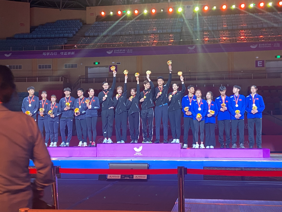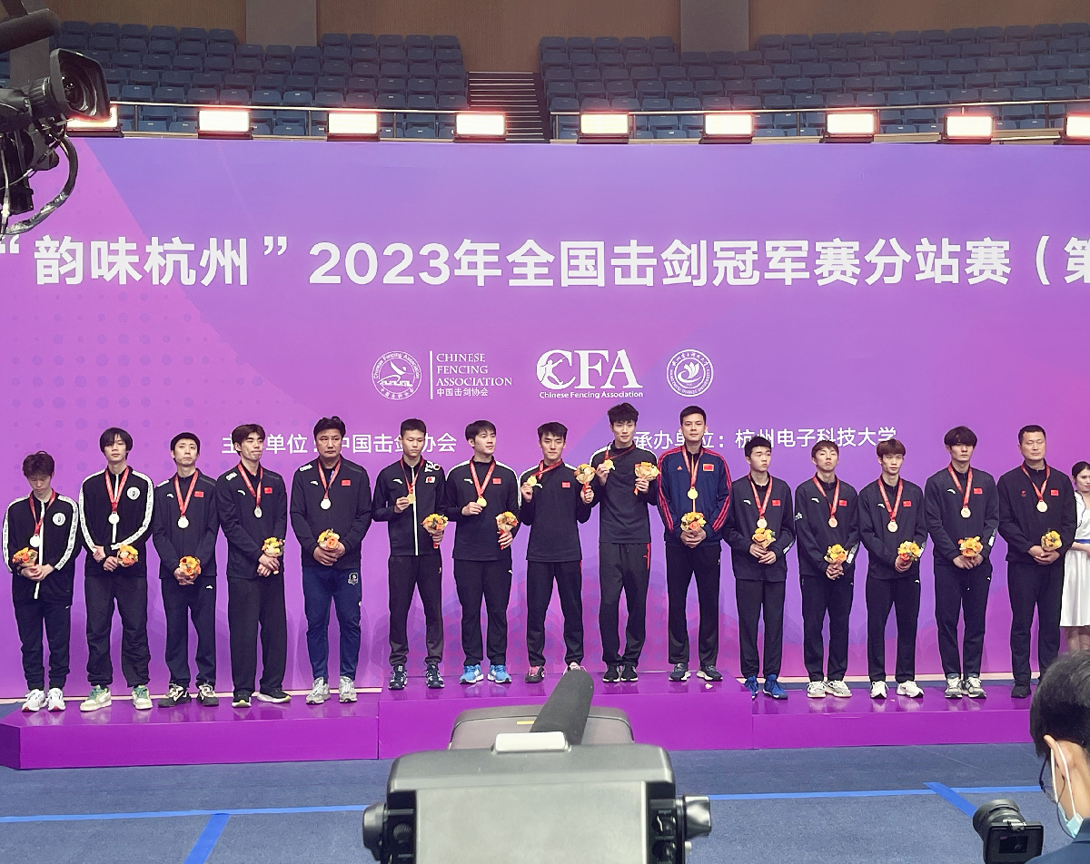5月24日,2023年全国击剑冠军赛分站赛(第二站)在杭州亚运会击剑项目竞赛场馆杭州电子科技大学体育馆正式开赛。本次比赛由中国剑协主办,杭州电子科技大学承办,共有48支代表队参赛,其中国家队队员悉数亮相,高手云集。我校市花剑队代表上海队获得混合团体第一、男子花剑团体第二、女子花剑团体第三,斩获1金、1银、1铜的优异成绩。