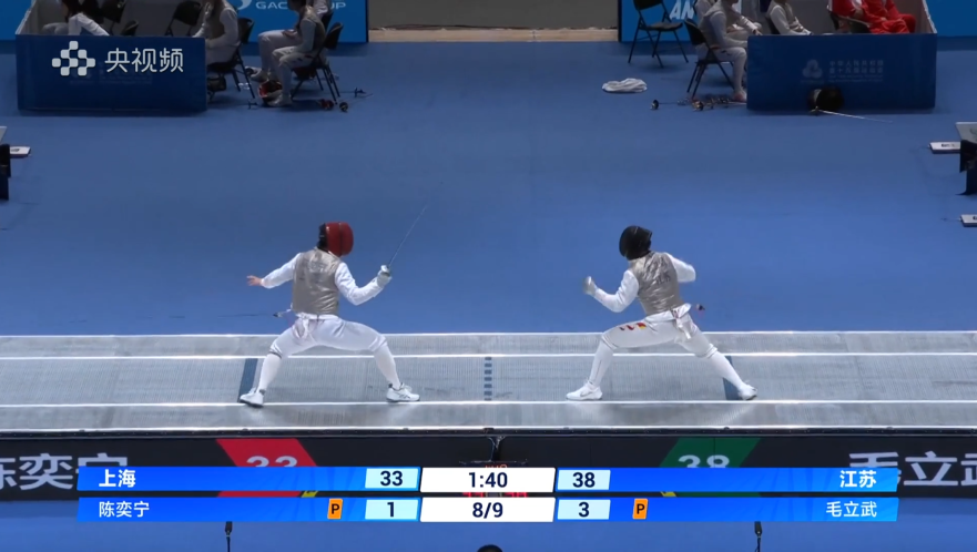 在男子花剑团体赛四分之一决赛中,上海队45比36击败东道主广东队,强势晋级四强。铜牌赛对阵江苏队,双方展开了一场精彩的攻防大战。最终,上海队的小伙子们凭借精准的剑法、不屈的意志实现逆转,击败对手,成功站上领奖台。此外,在11月16日举行的男子花剑个人赛中,我校市花剑队员陈奕宁获得个人第七名。