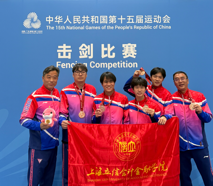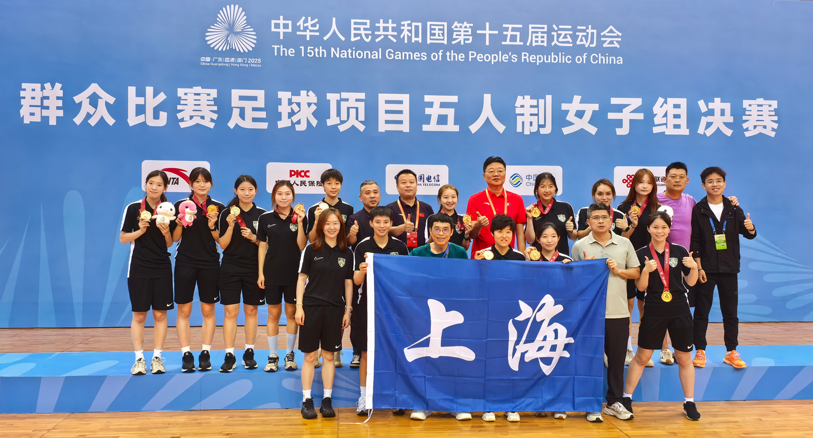 其中,我校健儿在本届全运会上为上海市代表团贡献了重要力量,共斩获1枚竞技体育项目铜牌及1枚群众体育项目金牌。校市花剑队队员陈奕宁、蔡金琿、仇辰杰与队友吴斌(来自虹口区体育局)夺得男子花剑团体季军,校女足高水平运动队队员邵丽娜、李永婷、高静、马慧君、沈鑫怡、李焱、舒佳怡入选女子五人制足球群众组上海队并随队夺冠。