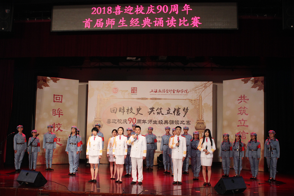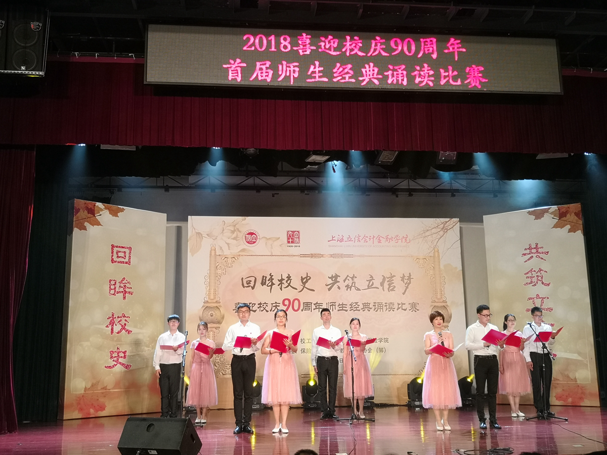 为迎接我校90周年华诞,传承校史文化,弘扬“立信”精神,增加师生荣誉感和凝聚力,更好地营造浓郁的校庆氛围,6月6日,由校工会、党委学生工作部、保险学院联合主办的“回眸校史 共筑立信梦”喜迎校庆90周年师生经典诵读比赛在浦东校区小剧场举行,比赛得到了各二级工会的积极响应,共有22支队伍参加了角逐。保险学院工会《信·丰碑》、图书馆工会《立信,让生命无垠》获一等奖;机关与科直工会、工商管理学院工会、马克思主义学院工会、金融学院工会的诗朗诵获得二等奖;另有六支队伍获得了三等奖。比赛由校工会孙翼、朱慧,学生鲁宁、王亚晨主持。