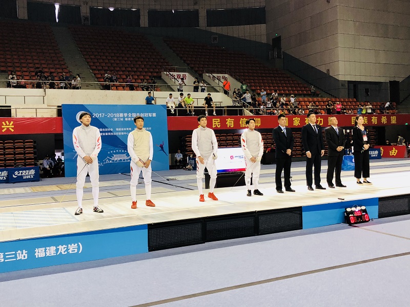 5月31日,2017-2018赛季全国击剑冠军赛(第三站)在福建龙岩举行。我校市花剑男女队员们奋勇拼搏,在男子成年组个人比赛中,吴俊豪获第三名,薛晓龙获第十一名,徐兆捷获十五名;在女子成年组个人比赛中,徐梦旭获第二名;徐云迪获第十三名。在男子青年组个人比赛中,薛晓龙获第十一名;在女子青年组个人比赛中,徐云迪获第十六名;获男子团体赛第五名,女子团体比赛第五名。
