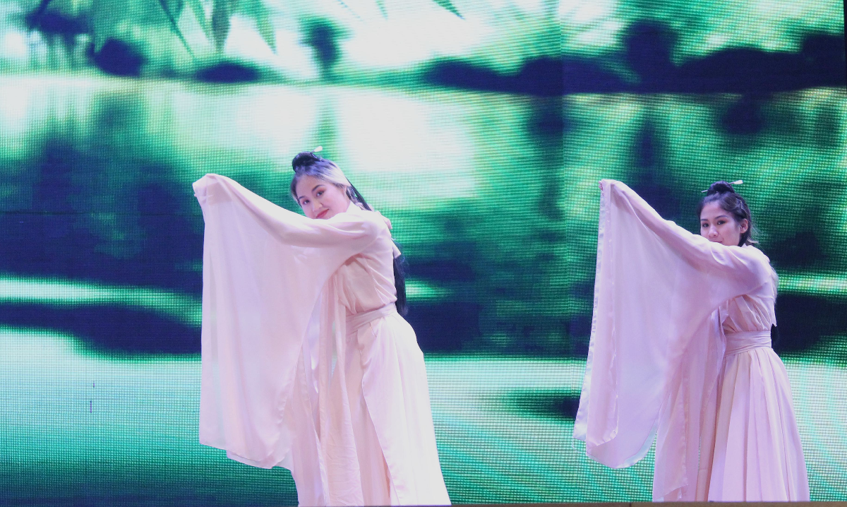 在3×3篮球赛和定向越野赛中,我校参赛队员拼搏奋进,展现了优良的体育精神和健康的青春风采。在体育艺术展示环节中,我校留学生们表演的古风舞蹈《洛水佼人》展示了中国古典的独特魅力,赢得评委和观众的一致好评,优美的舞蹈画面出现在CCTV5的新闻报道中。