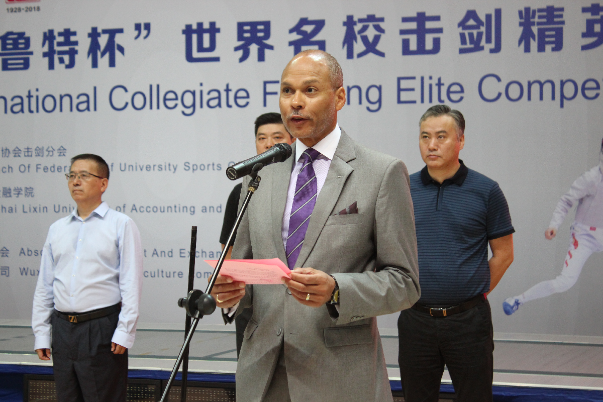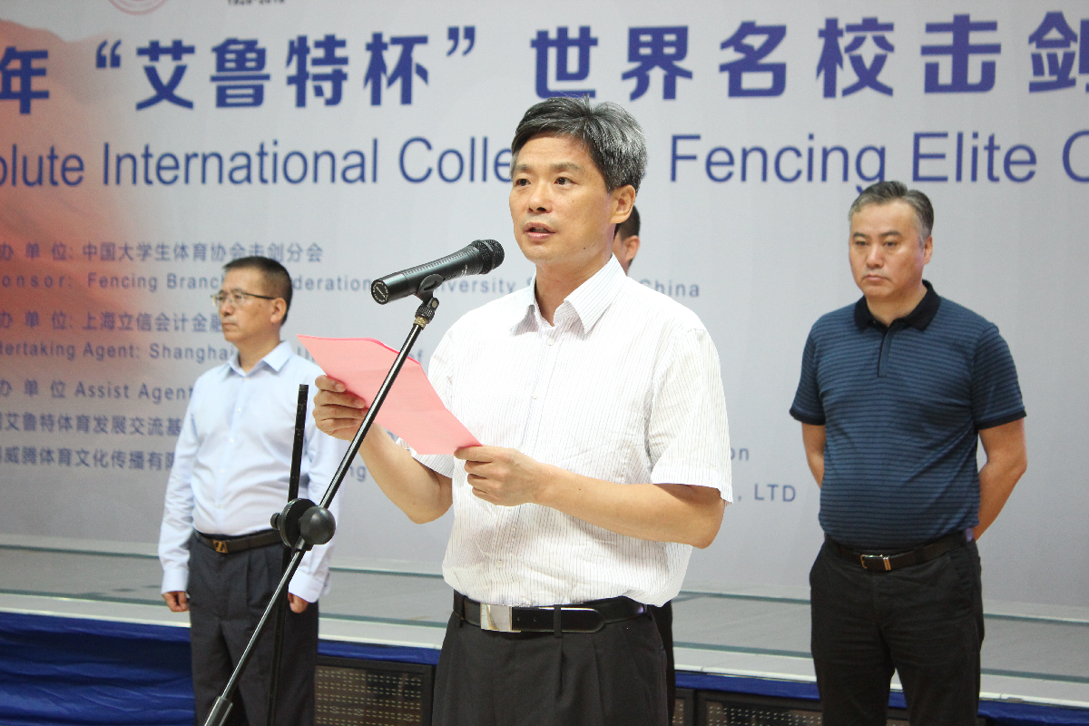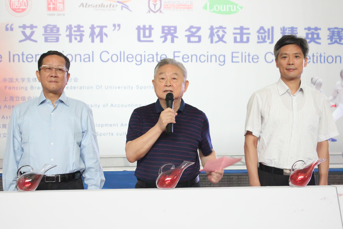 由中国大学生体育协会主办、我校承办的2018年世界名校击剑精英赛于8月21日开幕。开幕式上,校长唐海燕致欢迎辞,国际剑联副主席、美国击剑协会主席安东尼讲话,原国家体委副主任、国际乒联终身名誉主席徐寅生宣布世界名校击剑精英赛开幕。上海市大学生体育协会会长薛明扬,我校副校长、中国大学生体育协会击剑分会主席赵荣善,上海市教委体卫艺科处处长丁力,美国艾鲁特体育发展交流基金会主席吕晓刚出席开幕式,校体育与健康学院副院长秦曼主持开幕式。