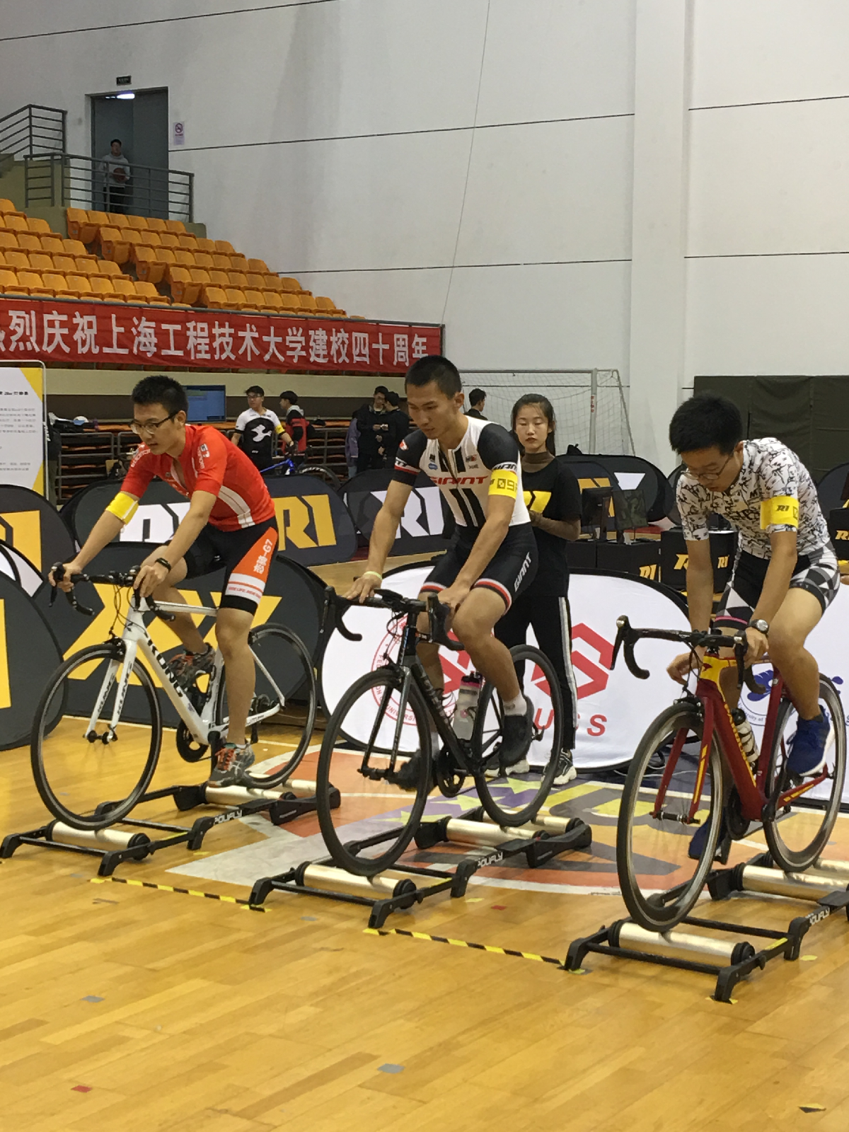 11月3日,2018年上海市第十六届运动会自行车比赛暨2018年上海市大学生自行车锦标赛在上海工程技术大学举行。来自上海各高校共16支队伍进行了激烈的角逐。我校自行车队蒋经纬同学获得个人挑战赛男子组第二名,摇车赛第四名,由蒋经纬、扈宇轩、游云飞组成参赛队伍获得团队计时赛第二名,团队总成绩第五名。