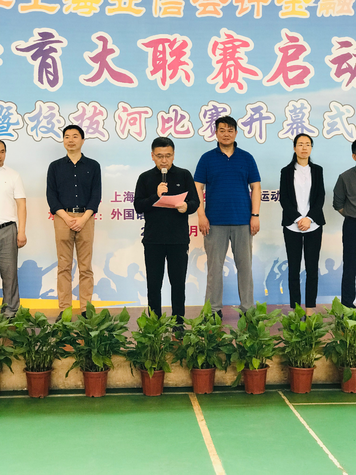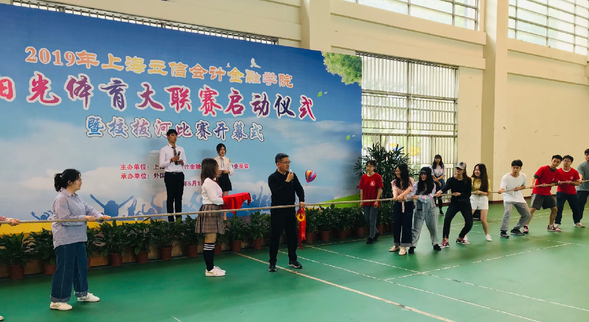 5月17日,我校2019年阳光体育大联赛启动仪式暨校拔河比赛开幕式在松江校区体育馆举行。副校长、体育运动委员会主任赵荣善,体育与健康学院院长、体育运动委员会秘书长刘国荣以及各学院领导出席,15个学院的300余名学生运动员代表参加启动仪式。启动仪式由体育与健康学院党总支书记尹晓春主持。