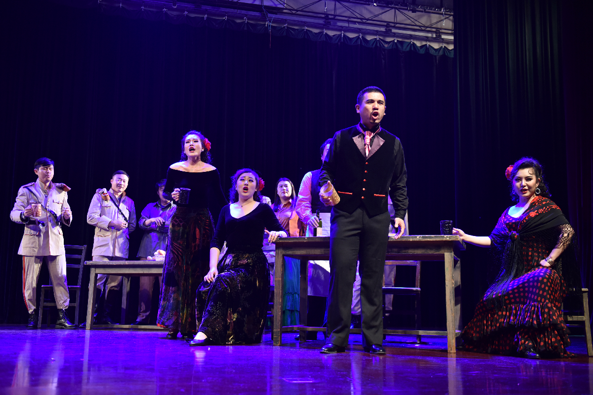 在本场演出中,艺术家们经过重新编排、整合,在100分钟内将歌剧《卡门》的精华部分一一呈现在观众眼前,一次又一次点燃了观众的热情。演出分为四幕,按照故事发展及人物的情绪变化,作曲家创作了多首独唱、二重唱、三重唱、五重唱等经典曲目。第一幕中卡门吟唱的咏叹调《爱情像一只自由鸟》,在主人公甫一出场,就成功地塑造出豪爽奔放而富有魅力的形象;第二幕中的进行曲《斗牛士之歌》,节奏有力、声音雄壮,将斗牛士埃斯卡米约的自豪感与英雄气概表现得淋漓尽致,而唐·霍塞的咏叹调《花之歌》是一次对爱情的深情表白。第三幕《纸牌三重唱》,将音乐和剧情融合得天衣无缝,是全剧中卡门唯一一次感到内心无助与害怕,痛苦与悲哀的唱段。随后出现的米卡埃拉的咏叹调——《我说我不害怕》,则充满了失落痛苦纠结的感情,反映出人物较强的心理矛盾冲突。歌剧临近尾声,歌唱家们精湛的唱功将演出一次次带入高潮,给观众留下了深刻印象。