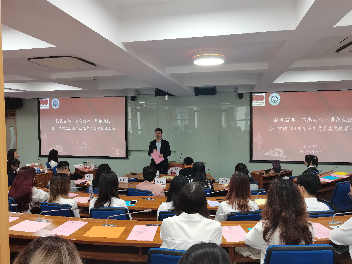 毕业生党员离校教育活动是高校思想政治教育工作的重要环节,会计学院党委坚持以情怀感染、以信念传承的思路,进一步强化了毕业生党员的身份意识,激励毕业生党员知行合一,有担当有作为。