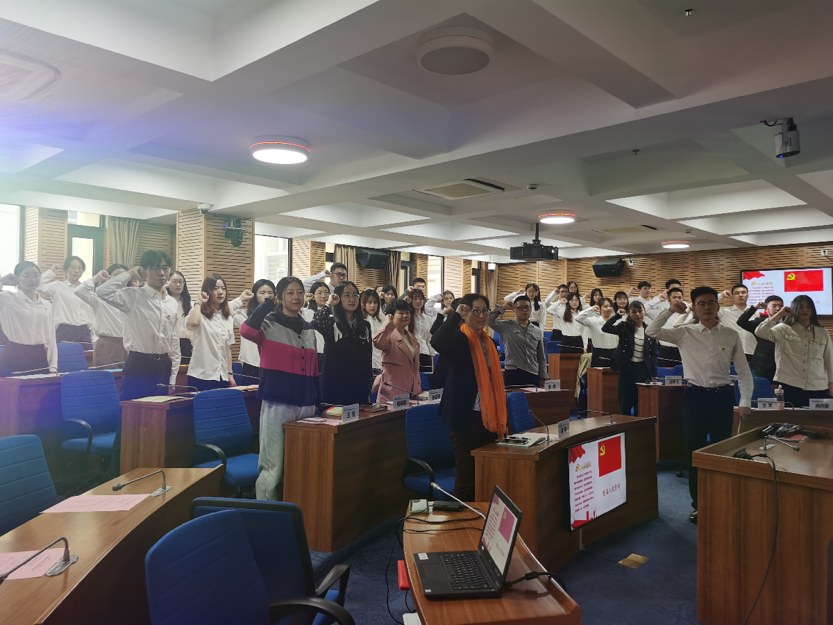 大会共同观看了以入党誓词为歌词、融合《中华人民共和国国歌》与《国际歌》旋律元素创作而成的歌曲视频《我宣誓》。赵立辉、夏昱向毕业生党员代表赠党员政治生日贺卡,激励毕业生永葆共产党员政治本色。所有毕业生党员以毕业生寄语接力形式献上对祖国、对党、对学校、学院的祝福。学生第一党支部毕业生党员、退伍士兵刘旺作为毕业生党员代表做题为“心中有信仰,方能扬帆起航”的交流分享。全体毕业生党员代表重温入党誓词,由研究生党支部董诗亮领誓。