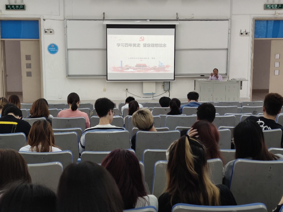 5月19日,我校在松江校区举办了学生党史学习教育专家讲座,这是我校大学生学党史系列活动之一,是校党史学习大学生宣讲团的第二场辅导讲座。本次讲座邀请了上海师范大学党校副校长曹鹏副教授作“学习百年党史 坚定理想信念”主题讲座。