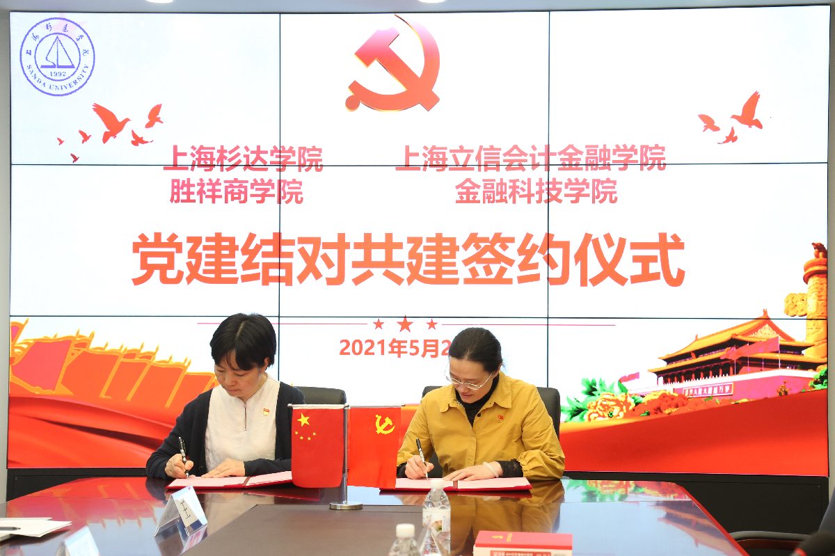 为深入学习贯彻习近平总书记在党史学习教育动员大会上的重要讲话精神,搭建公民办高校之间的党建共建平台,5月20日下午,金融科技学院党总支与上海杉达学院胜祥商学院党总支签署了党建共建协议,杉达学院党委组织部部长魏佳出席并致辞。胜祥商学院党总支书记陈敏云,副院长陶长松、陈淑贤,副书记韩斌全,金融科技学院党总支副书记(主持党务工作)褚红素等出席签约仪式。