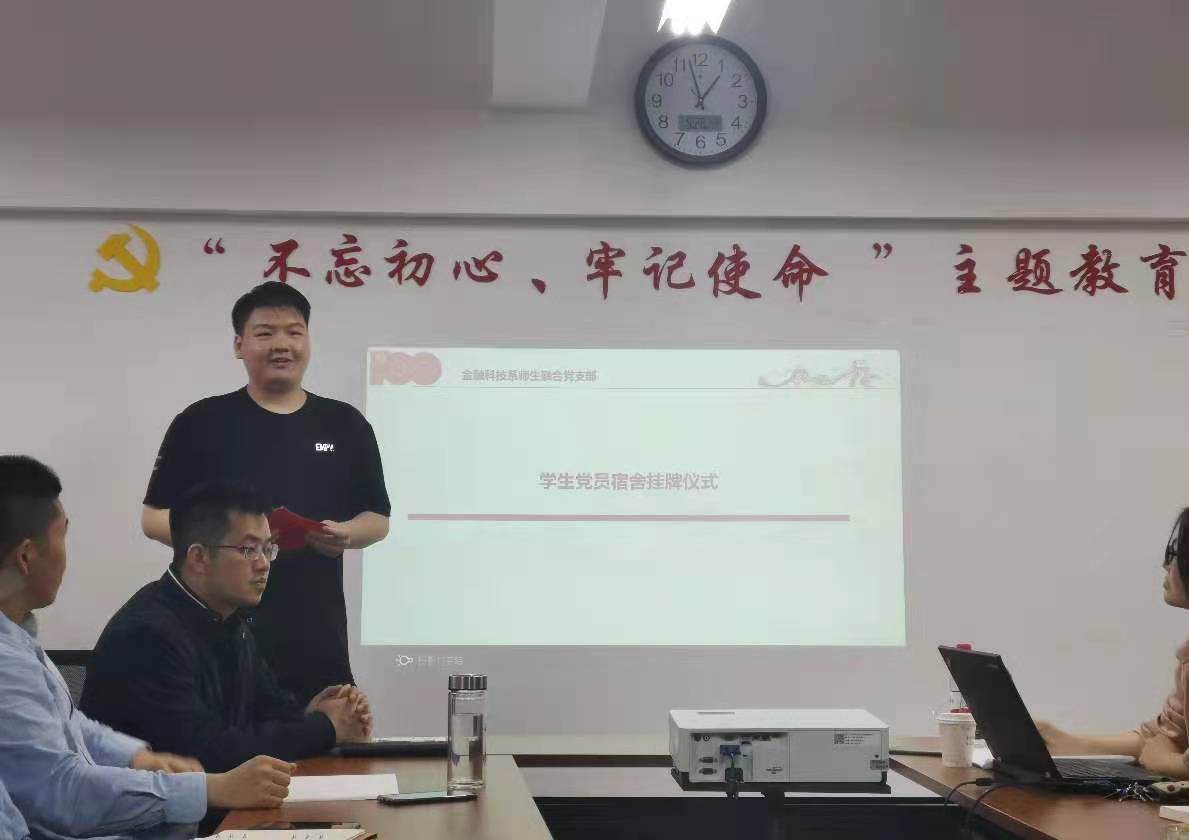 为加强学生党员的责任意识,进一步提升学生党建工作水平,充分发挥学生党员在学生日常管理和宿舍文明建设中的先锋模范作用,铭记党员身份,牢记初心使命,近日,金融科技学院组织举办学生党员宿舍挂牌仪式。学院党总支副书记(主持党务工作)褚红素、金融科技学院副书记、副院长李俊杰、金融科技学院副院长杨超、金融科技系师生融合党支部书记吴慧以及学生党员代表参加了本次活动。