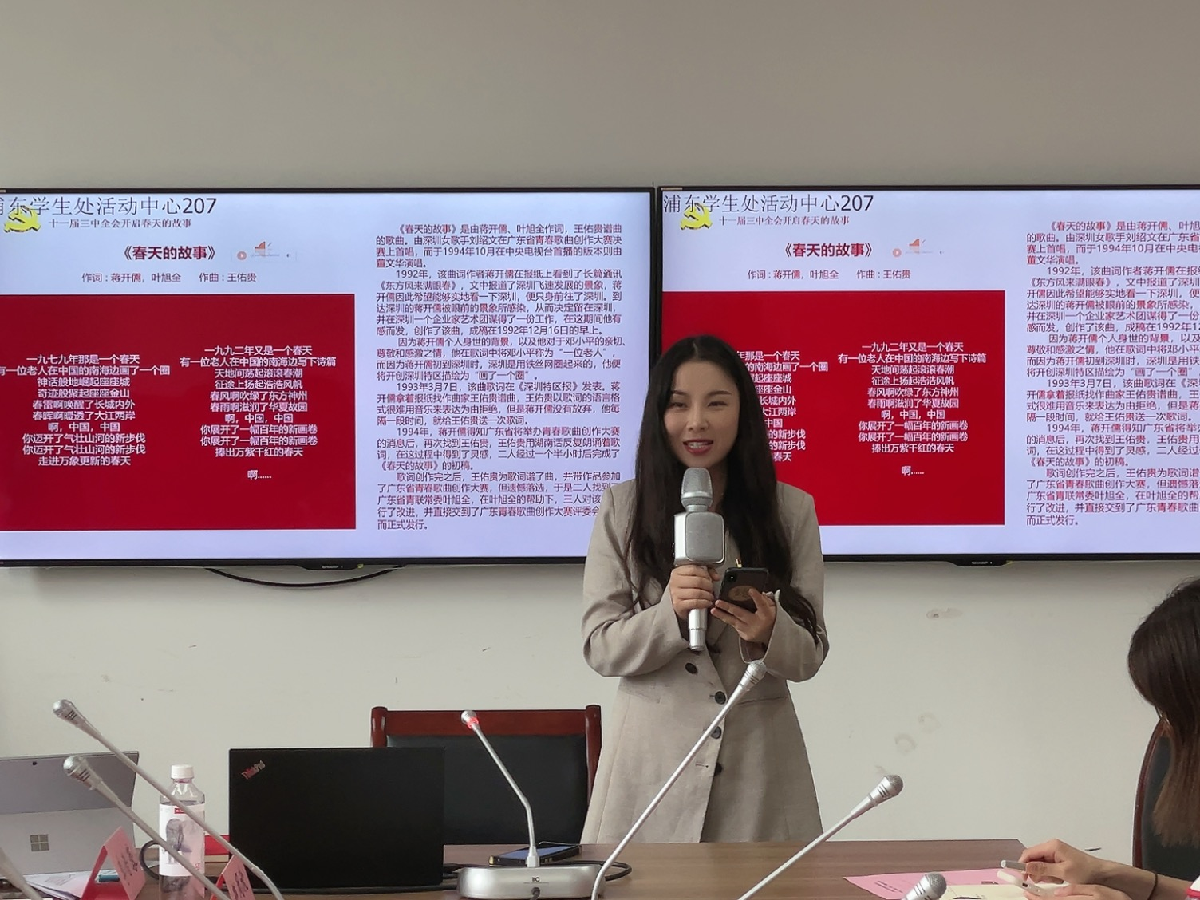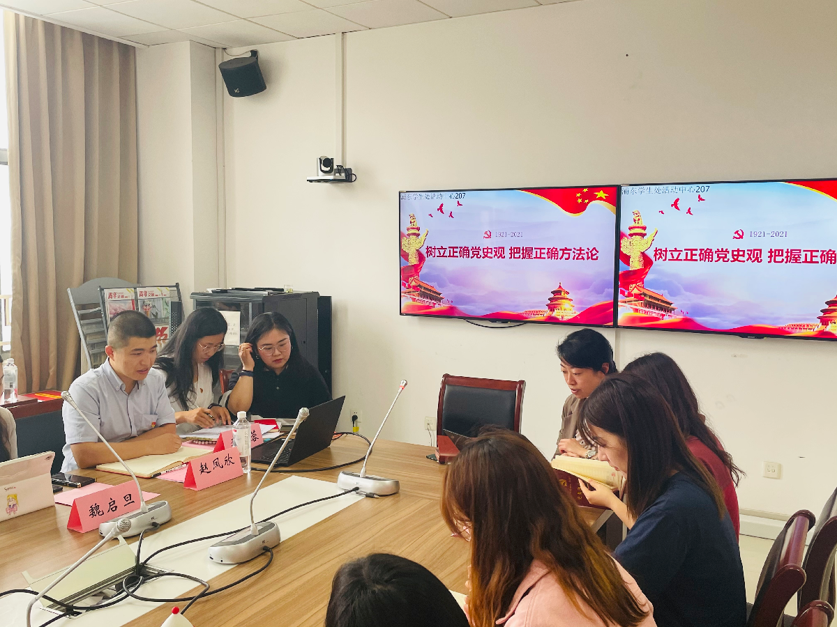 会上,国际经贸学院赵凤欣以《树立正确党史观,把握正确方法论》为主题作了交流发言,他认为党史学习教育要以习近平总书记关于党史的重要论述为指导,对标党的最新理论著作,坚持唯物史观和辩证史观,引导青年大学生树立正确的党史观。信息管理学院李晋蓉从党史学习主题班会的理论指导、活动形式、教育场景、班会主题确立等方面系统梳理和总结了开展党史学习主题班会的经验与心得体会。校团委魏启旦以讲解、演唱和领唱相结合的形式作《音乐融合信仰歌声传承使命》主题音乐党课,回顾了《不放初心》《洪湖水浪打浪》《春天的故事》等多首耳熟能详的红色经典音乐作品,讲解了音乐背后共产党的奋斗历史和伟大征程的党史故事,在沉浸式体验中将音乐艺术与党史学习教育有机融合,探寻百年党史。