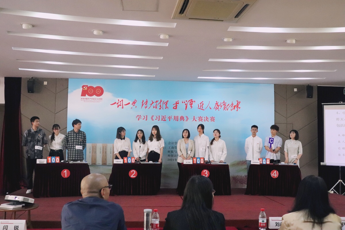 6月4日下午,会计学院联合工商管理学院、财税与公共管理学院、外国语学院共同举办 “一词一典 博大精深 ‘平’语近人 赓续传承”学习《习近平用典》大赛决赛。校党委委员、校党委组织部部长刘永琴,校党建督导员邬敏懿,松江校区四个学院党委(总支)书记、副书记出席活动;各学院组织员、党支部书记代表、教师学生代表参加活动。