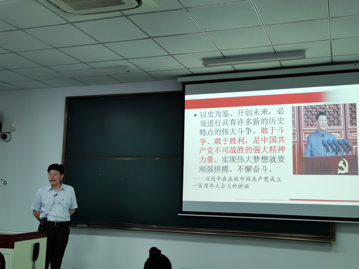 陈超结合习近平总书记“七一”重要讲话精神,从历史、理论、现实三个维度深入分析了为什么要发扬斗争精神,新时代伟大斗争精神的内涵,以及如何保持斗争精神和增强斗争本领。