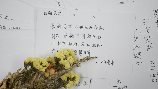 体验结束后,同学们纷纷在白色卡纸上写下致敬先烈的话语,寄托对革命先烈的无限哀思和崇高敬意,表达接续奋斗的远大志向。