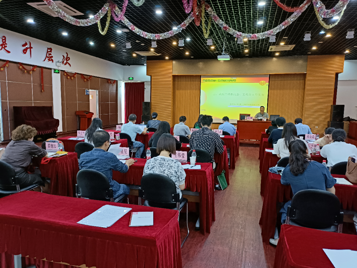 原上海工会管理职业学院教授王贤森就中国工会的发展历史、新时期基层工会工作的目标任务进行了专题讲座。校工会常务副主席孙翼就2021年度我校二级教代会、工代会的工作要求、重点难点进行了梳理和说明,并通报了近期工会的主要工作。