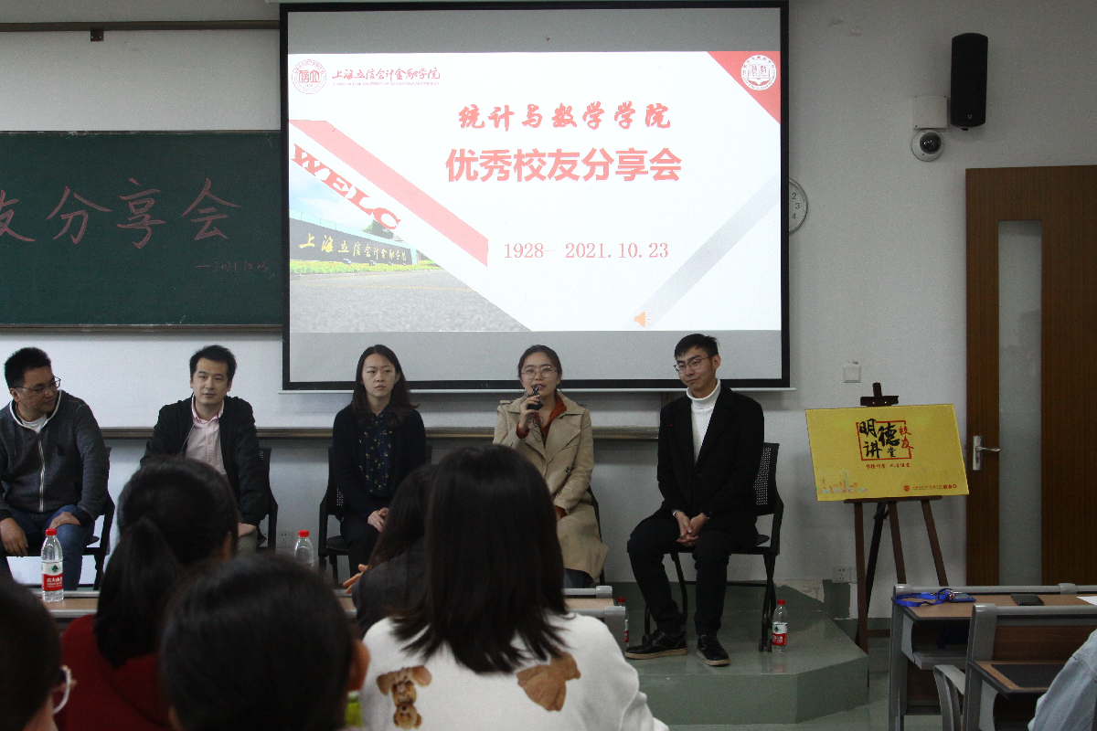 为庆祝校庆93周年,加强校友与母校之间的互动、交流与合作,提升校友对学弟学妹的发展指导,统计与数学学院10月23日开展“校友明德讲坛”分享会,2010届、2014届、2021届部分校友返校参加了分享会。分享会以访谈的形式开展,校友们分享了大学时期的成长,毕业后的就职感悟;并结合自身经历,对在校同学们关心的就业问题和个人发展进行了耐心细致的解答。