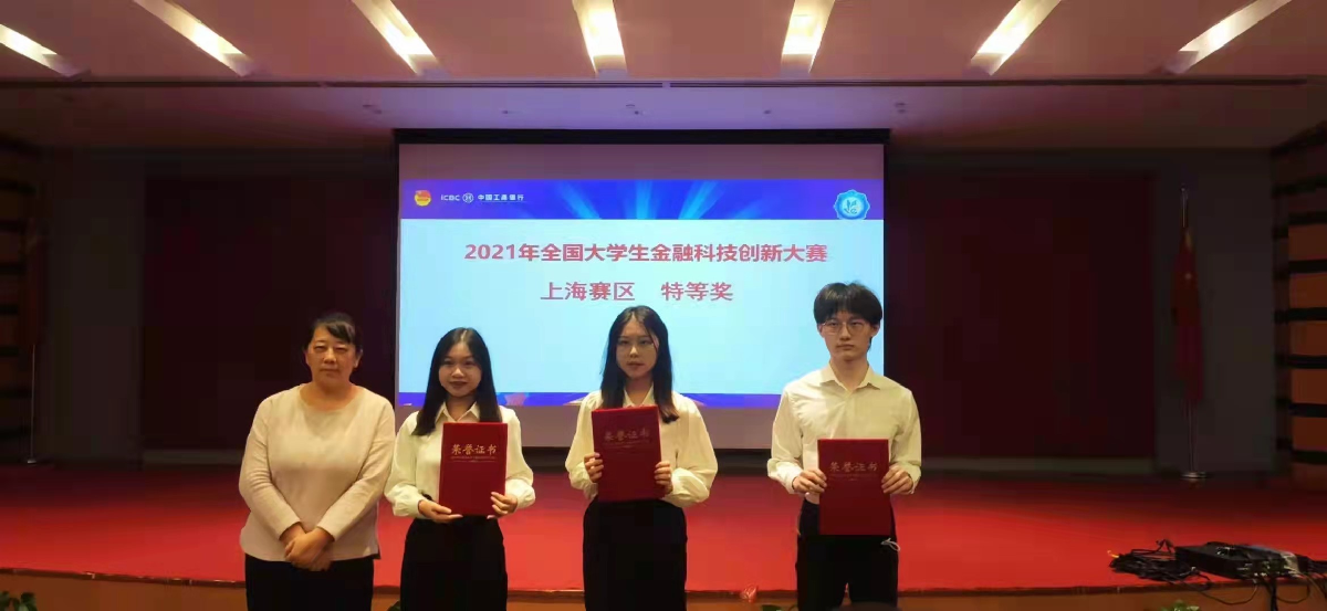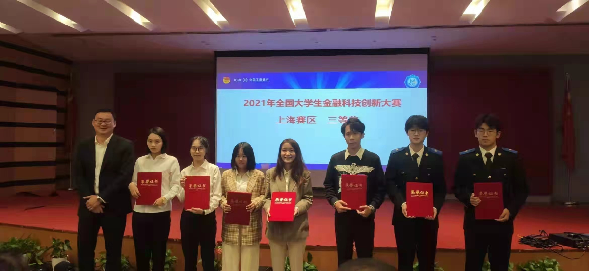 由共青团中央支持指导、中国工商银行主办的2021年“工行杯”全国大学生金融科技市赛10月23日举行,金融科技学院三支队伍入围决赛。2019级金融科技专业学生林嘉乐、陈嘉祺“聚视界——基于AR交互和人工智能的个性化出行定制服务平台”项目获得一等奖;孙艺洋、韦思懿“盲盒信用卡”项目获得二等奖;杨偲晢、谢滢“福禄e满堂——基于客户画像、AI风控、云端加密数据库的养老金产品”项目获得三等奖。
