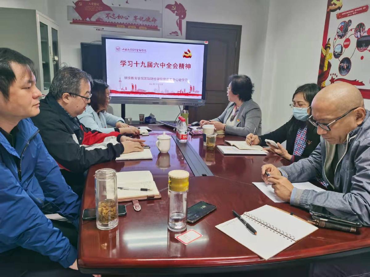 同日,学院还组织了全体教职工在徐汇校区1号楼9楼观看了十九届六中全会发布会并学习了相关精神。