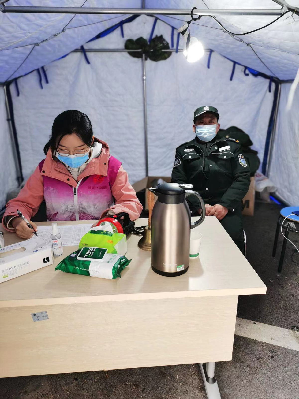 没有给自己喘息的机会,上午的志愿服务一结束,吴洁老师就投入到三节《银行信贷管理》的网上授课工作中。一下课,又加入了社区核酸采样清场的工作。深夜,忙碌了一整天的她才有时间更新朋友圈动态:“中国老百姓的善良、担当和坚韧在关键时刻总能迸发出惊人的力量,刚结束网课的我表示这一天全是正能量。”