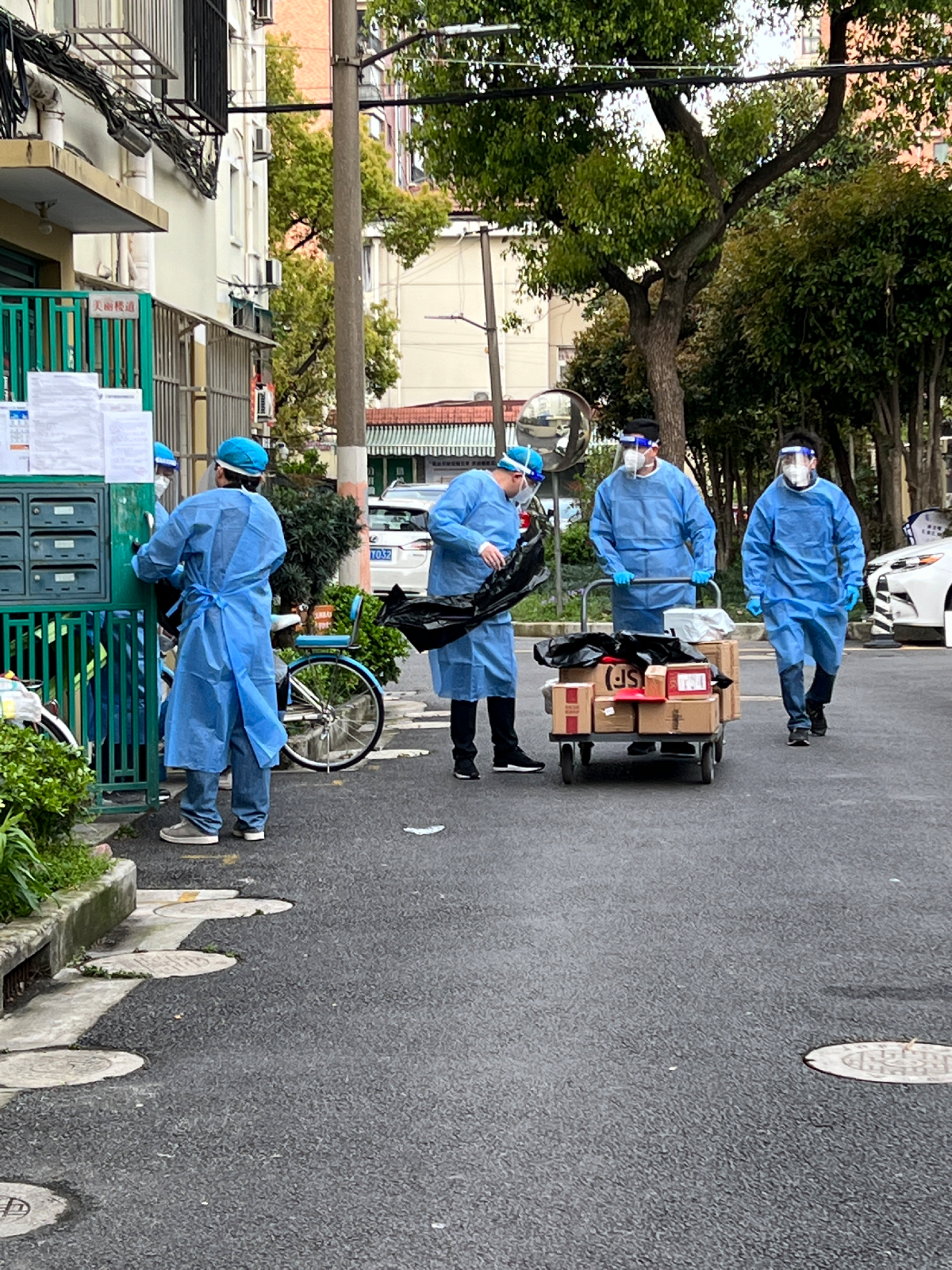 王斯龙 我在负责装卸和分发政府保障物资时,运送车子不够,我们想办法借来两辆三轮车,大大提高了分发的效率,及时把物资交给楼组长分发下去。任务完成后感觉到手发软、腰背酸胀,当我看到居民们不断发出“手中有粮心中不慌”“有底气了”“感谢政府”等感慨时,我觉得再累也是值得的。作为大白,第一次穿戴上防疫装备,口罩勒得很痛,防护服比较闷,穿上后上洗手间成为奢望,隔离面罩下眼镜起雾,下雨了外面一层水,里面一层雾,视线一直处于模糊状态,我更对防疫人员心生敬意。来我们小区进行核酸检测的浙江医务人员自带装备,抵沪后连轴转采样,从早上到下午,没有休息,没有吃饭。此刻,我更深刻地体会到习近平总书记所说的:广大医务人员是最美的天使,新时代最可爱的人!