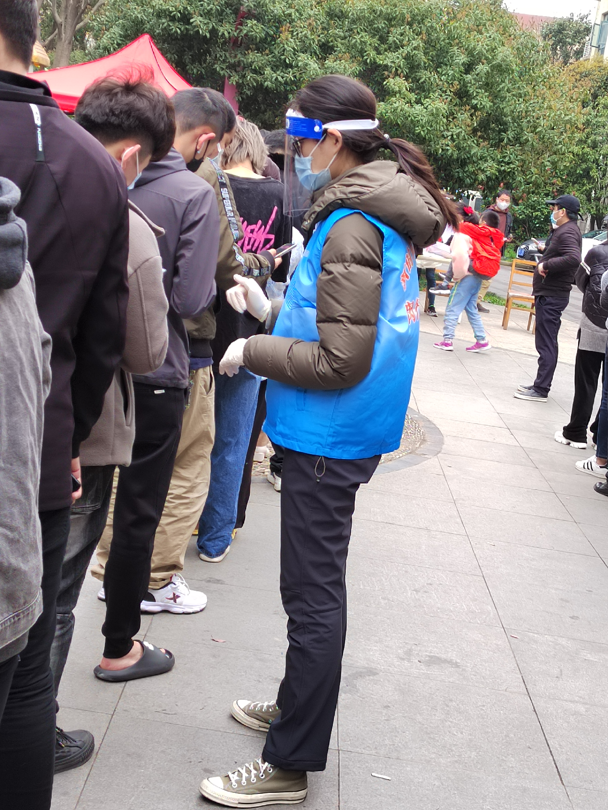 沈奕冰 我还不是党员,3月17日终于被批准成为社区志愿者感到非常自豪。二十天过去了,在社区来回跑播报通知,楼上楼下挨家挨户敲门通知核酸,耐心细致地为子女不在身边的老人解释政策、在医务人员指导下帮忙准备核酸检测用具,为有困难的居民楼上楼下扛东西,为物资缺乏的居民想办法采购。服务到位,才能让大家安心居家。化身大白,在提供服务的同时经历了头疼、缺氧、汗透……志愿者服务不易,医务人员更让人崇敬。参与志愿者活动让我在思想上、行动上向党组织又靠近了一步!