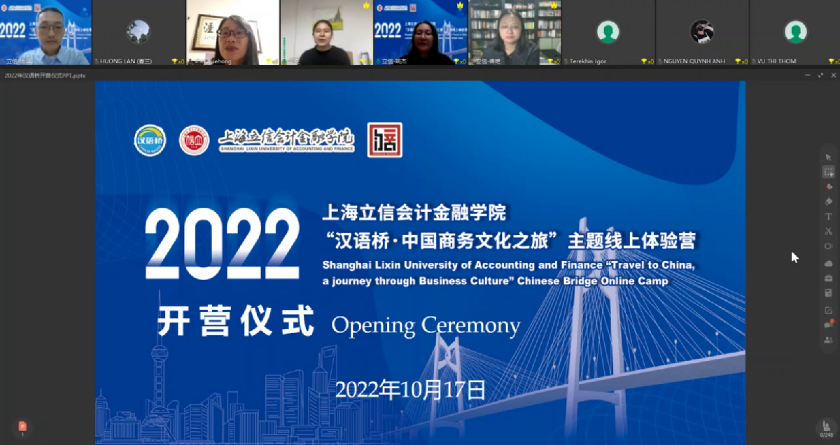 由教育部中外语言交流合作中心主办,我校国际交流学院承办的“汉语桥·中国商务文化之旅”线上团组体验营于10月17日线上开营。来自越南、俄罗斯、希腊、波兰等10个国家的400多名师生相聚云端,参加线上开营仪式。国际交流处、国际交流学院负责人姚杰,孔子学院教师出席。