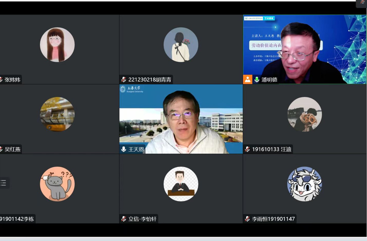 潘明德教授对讲座主要内容进行了总结。与会师生踊跃提问,就劳动价值论内在逻辑的人工智能进行了交流探讨。马克思主义基本原理学科团队全体成员、校内外部分师生参与了本次讲座。