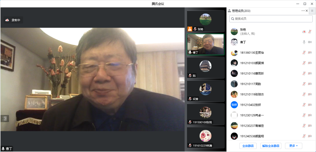 为丰富校园文化,加强学生人文艺术的培养,11月22日下午,国家一级指挥家曹丁受邀参加我校举办的“学术活动月”,以腾讯会议的形式作“我的合唱艺术之路”讲座。本次会议由人文艺术学院副院长何爽主持,200余位师生共同参加。