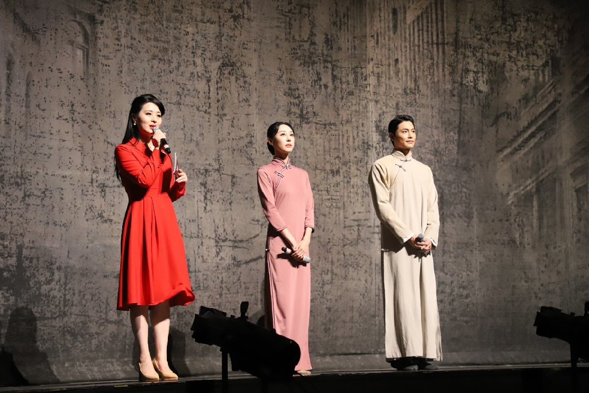 演出开始前,上海歌舞团副团长、剧中兰芬的扮演者朱洁静和上海歌舞团艺术总监助理、剧中李侠的扮演者王佳俊与观众分享了参与舞剧《永不消逝的电波》创作的历程与心得。
