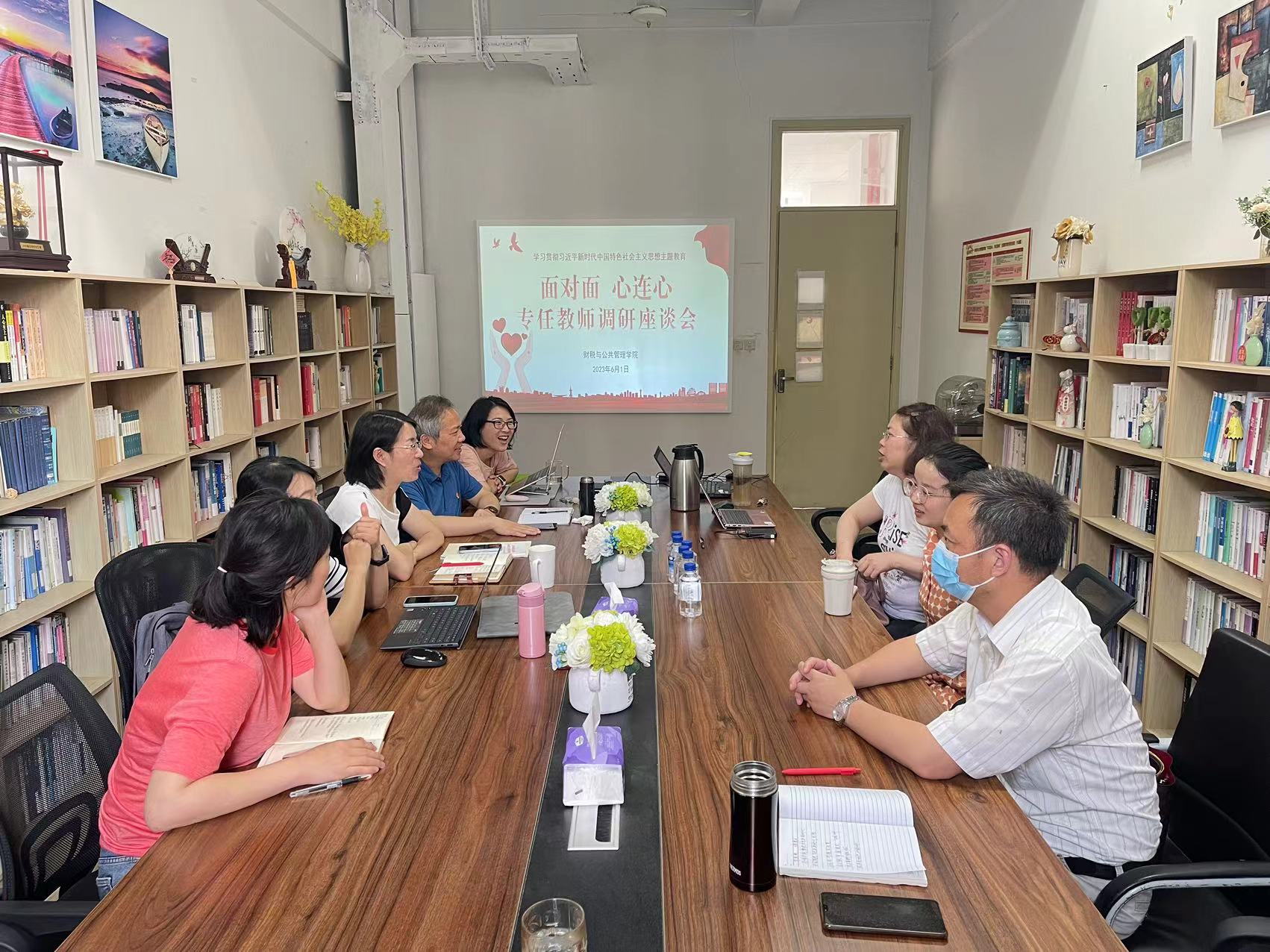 为深入开展学习贯彻习近平新时代中国特色社会主义思想主题教育,扎实做好调查研究工作,6月1日,财税与公共管理学院于文翔路校区举行“面对面、心连心”专任教师线上线下调研座谈会。学院党政领导班子成员出席会议,各系主任、专任教师代表参加座谈会,会议由学院党总支副书记(主持党务工作)王亭主持。