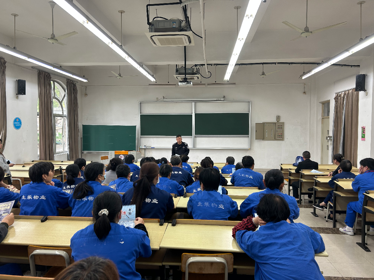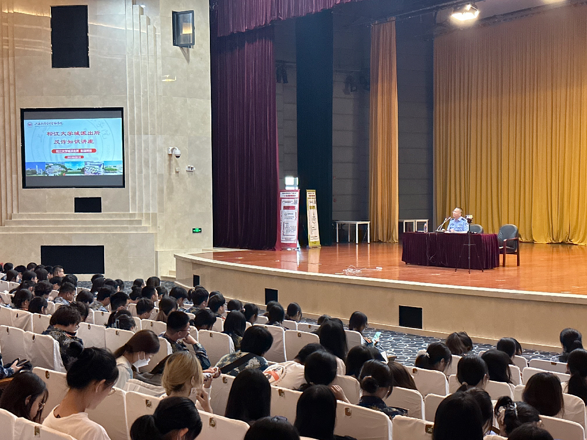 朱建根据松江大学城今年以来电信诈骗实际案发事例进行举例讲解,给同学们讲解了诈骗的原理、常见话术和应对策略,并告诫同学们要戒贪戒欲,从自身源头上防止上当受骗。