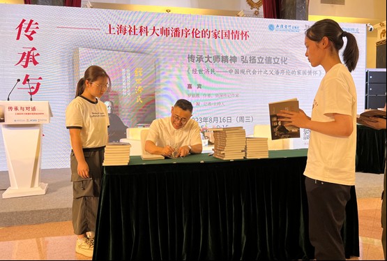 8月16日,2023年上海书展暨“书香中国”上海周系列活动拉开帷幕。由立信会计出版社主办、第一财经《来点财经范儿》合办的对谈活动“传承与对话——上海社科大师潘序伦的家国情怀”在上海展览中心友谊会堂一楼举办。