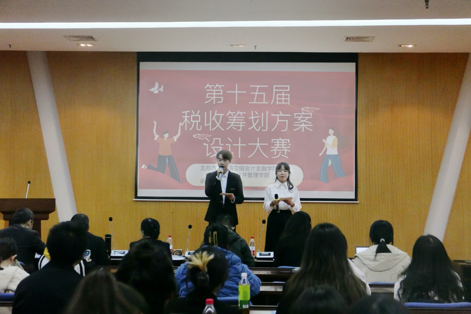 11月15日,由校团委、财税与公共管理学院主办,财税学社承办的第十五届税收筹划方案设计大赛在文翔路校区举行。上海海关学院海关与公共经济学院院长崔志坤,财税与公共管理学院税收学教授赵迎春,税务教研室主任赵海益,税收学教师出席比赛并担任评委。